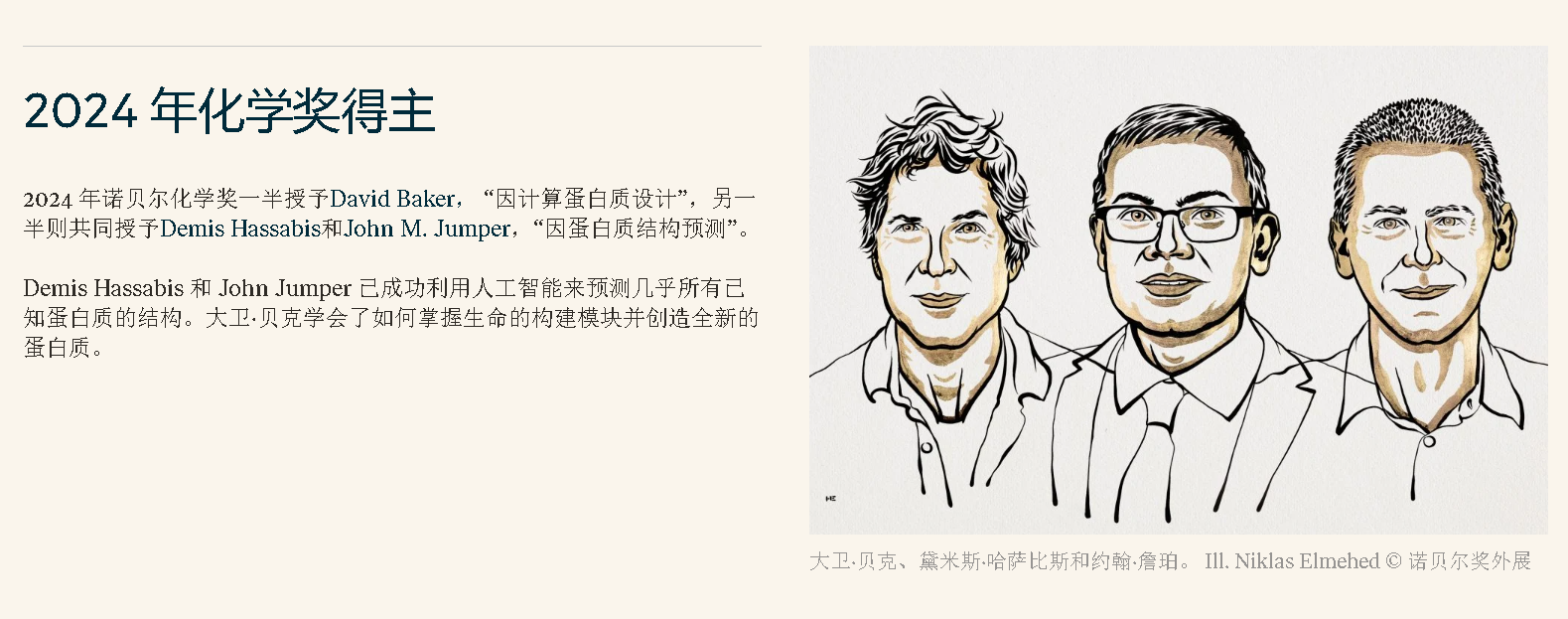 化學(xué)家長期以來一直夢想著完全理解和掌握生命的化學(xué)工具——蛋白質(zhì)。這個夢想現(xiàn)在已經(jīng)觸手可及。Demis Hassabis和John M. Jumper已成功利用人工智能來預(yù)測幾乎所有已知蛋白質(zhì)的結(jié)構(gòu)。大衛(wèi)·貝克學(xué)會了如何掌握生命的構(gòu)建模塊并創(chuàng)造全新的蛋白質(zhì)。他們的發(fā)現(xiàn)潛力巨大。