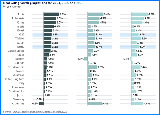 新華社巴黎3月17日電(記者李文昕)經(jīng)濟(jì)合作與發(fā)展組織(經(jīng)合組織)17日發(fā)布中期經(jīng)濟(jì)展望報(bào)告,預(yù)計(jì)2025年和2026年全球經(jīng)濟(jì)將增長(zhǎng)3.1%和3.0%,較去年12月的預(yù)測(cè)值分別下調(diào)0.2和0.3個(gè)百分點(diǎn)。
