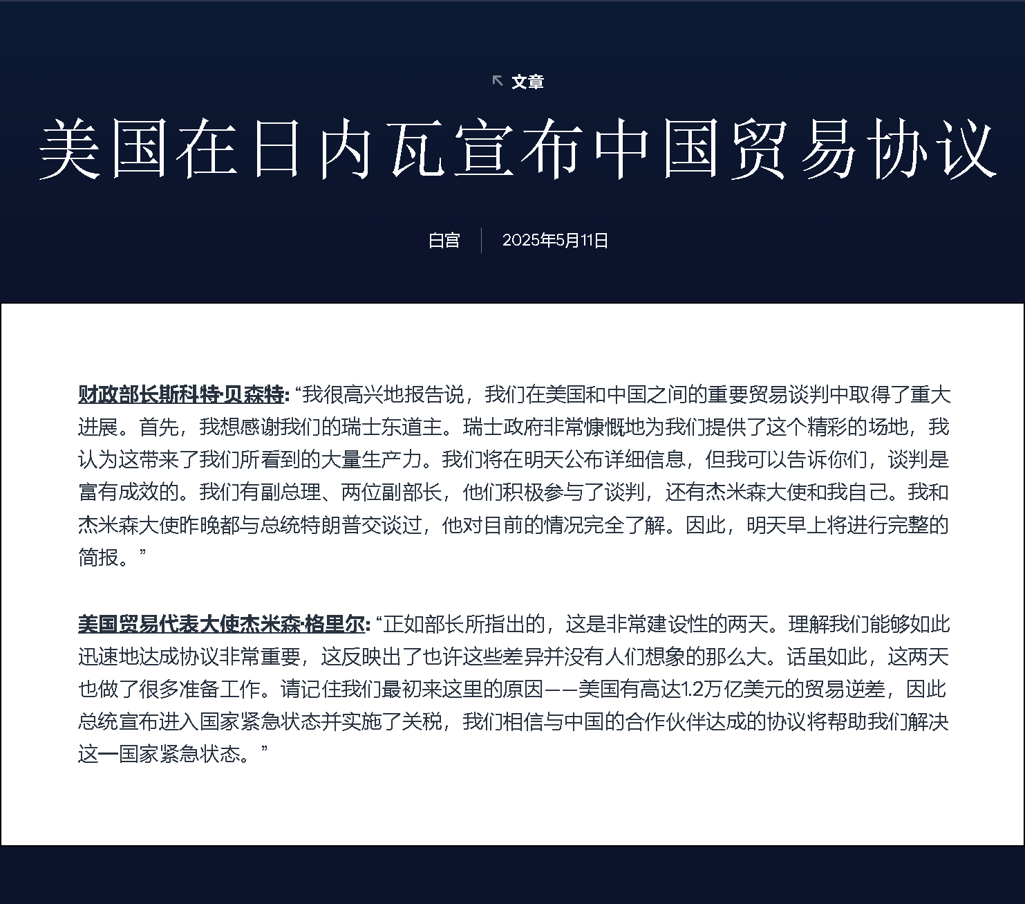 中美日內(nèi)瓦經(jīng)貿(mào)會談聯(lián)合聲明