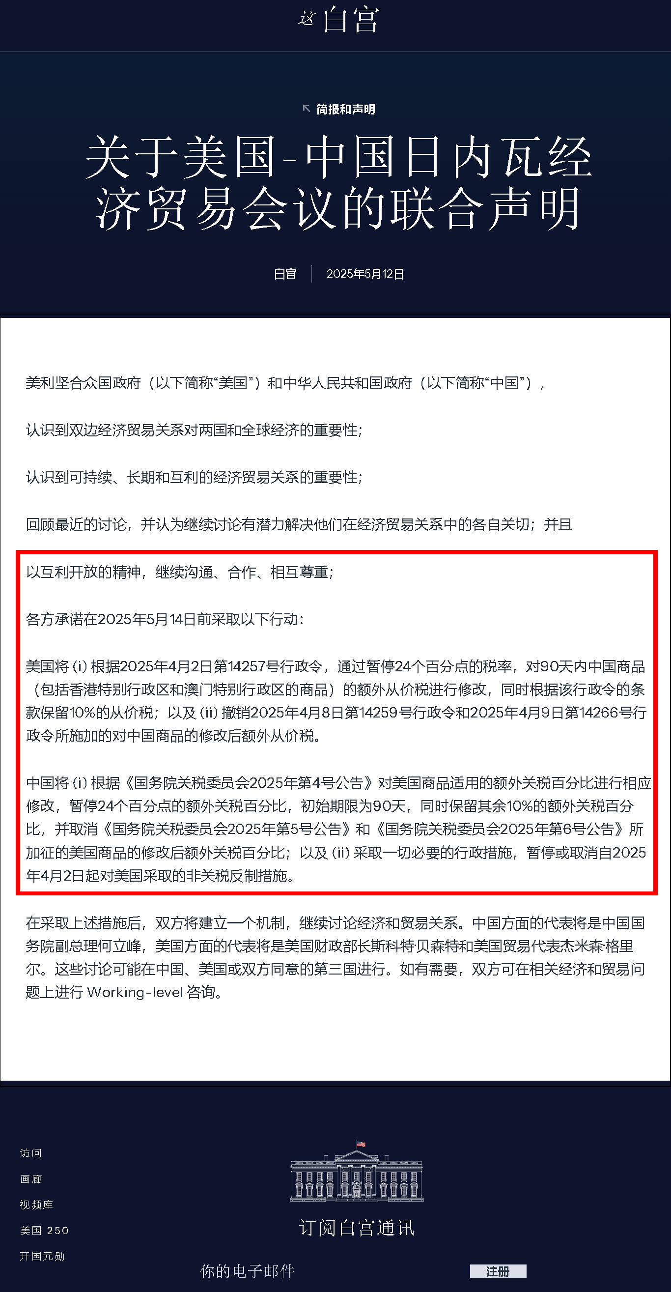 雙方承諾將于2025年5月14日前采取以下舉措: