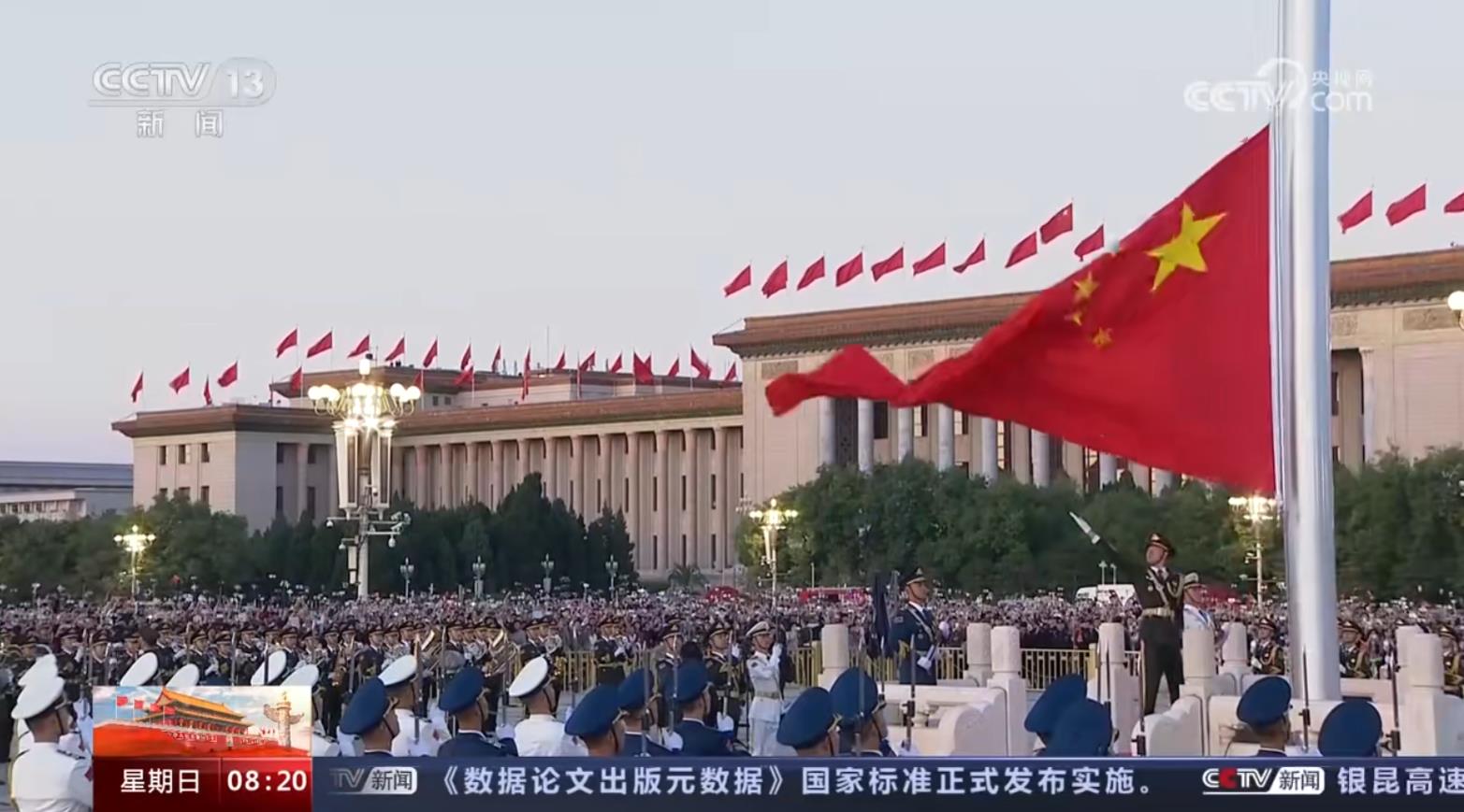 “向國旗——敬禮!”6時9分,隨著儀仗隊員的口號聲,《義勇軍進行曲》響徹天安門廣場。