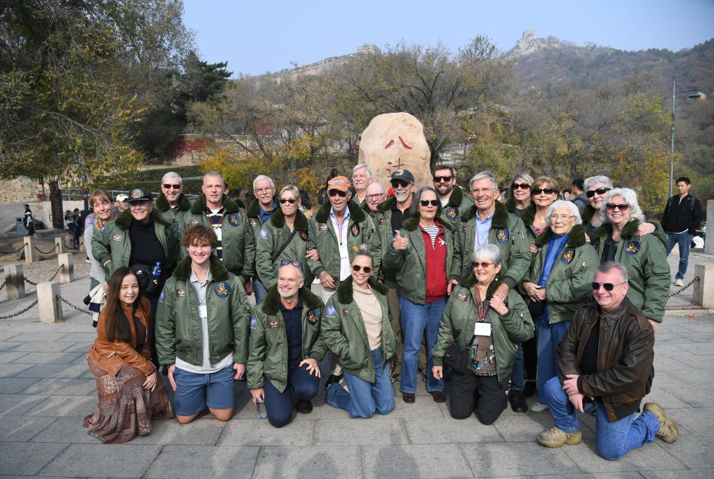 10月29日,飛虎隊(duì)老兵莫耶一行人在北京八達(dá)嶺長城合影留念。當(dāng)日,美中航空遺產(chǎn)基金會(huì)訪華代表團(tuán)成員陸續(xù)抵達(dá)北京。新華社記者 任超 攝