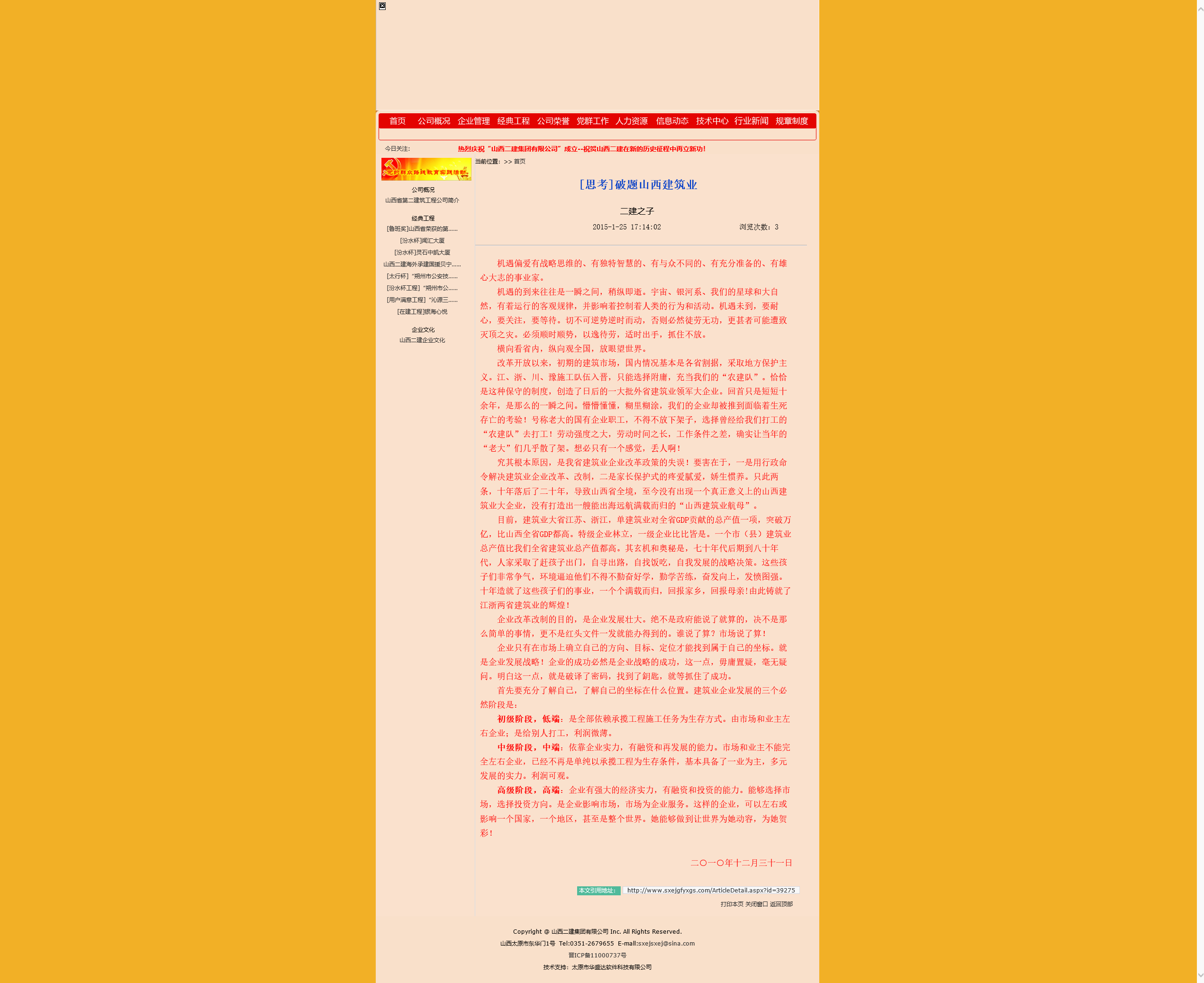 編者的話:二○一○年末到蒞年初,山西二建正處在重大轉折的關鍵時刻。