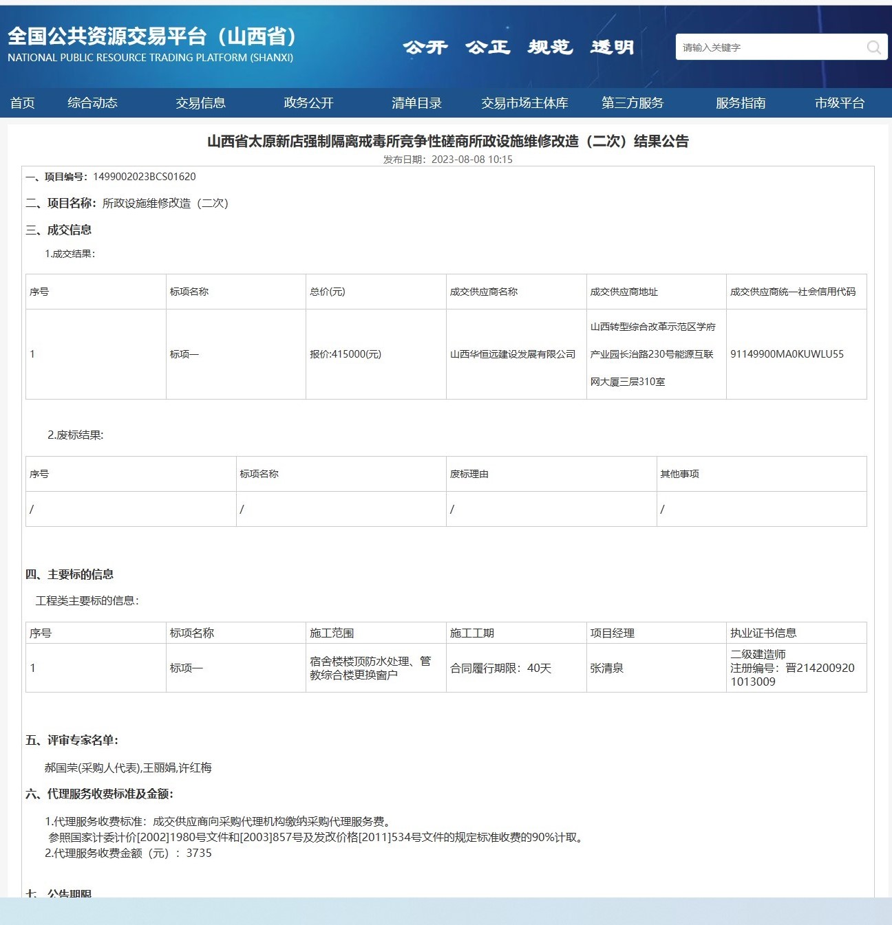 山西省太原新店強(qiáng)制隔離戒毒所競(jìng)爭(zhēng)性磋商所政設(shè)施維修改造(二次)