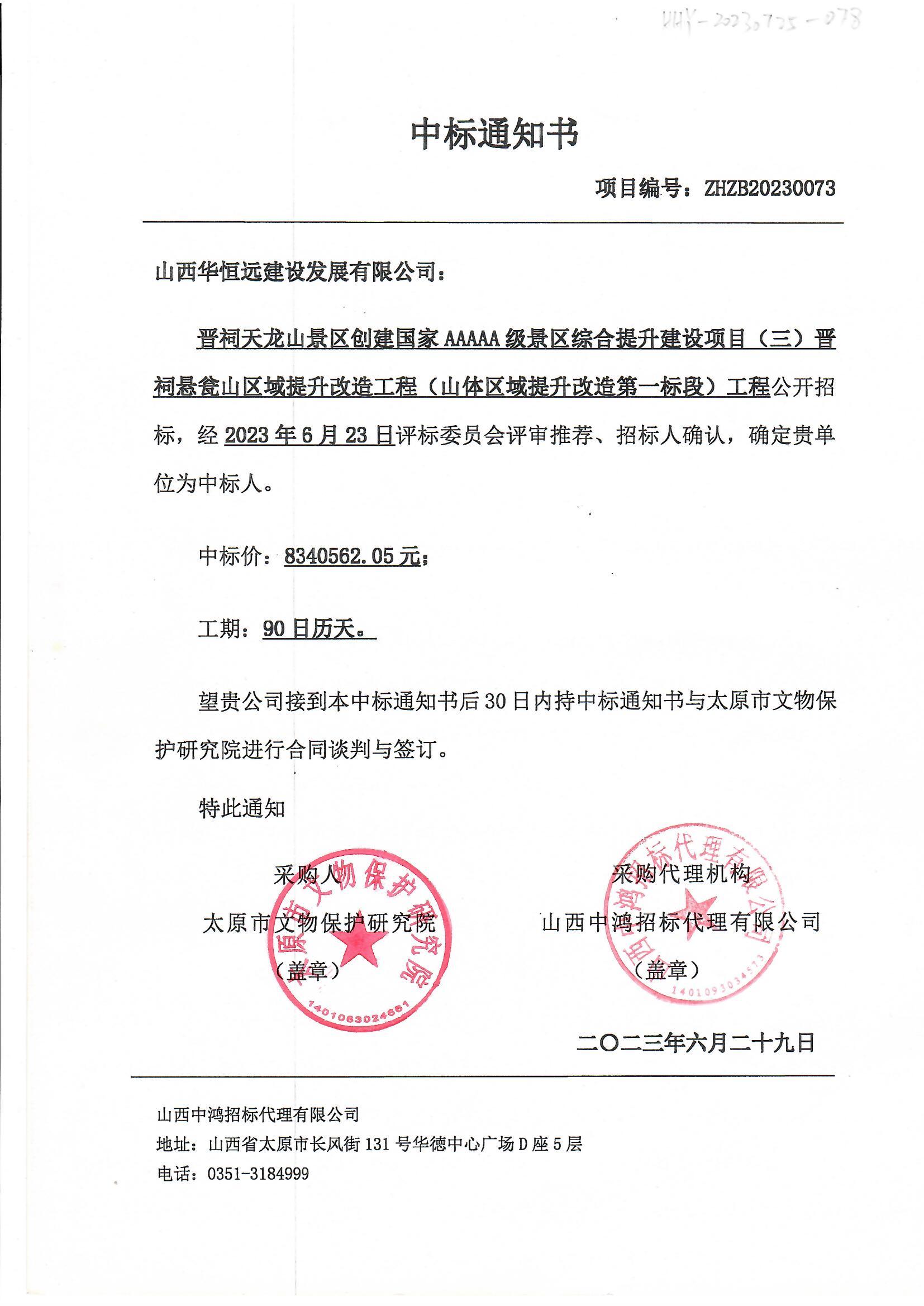 晉祠天龍山景區創建國家AAAAA級景區提升項目(三)晉祠懸甕山區域提升改造工程(山體區域提升改造第一標段)工程