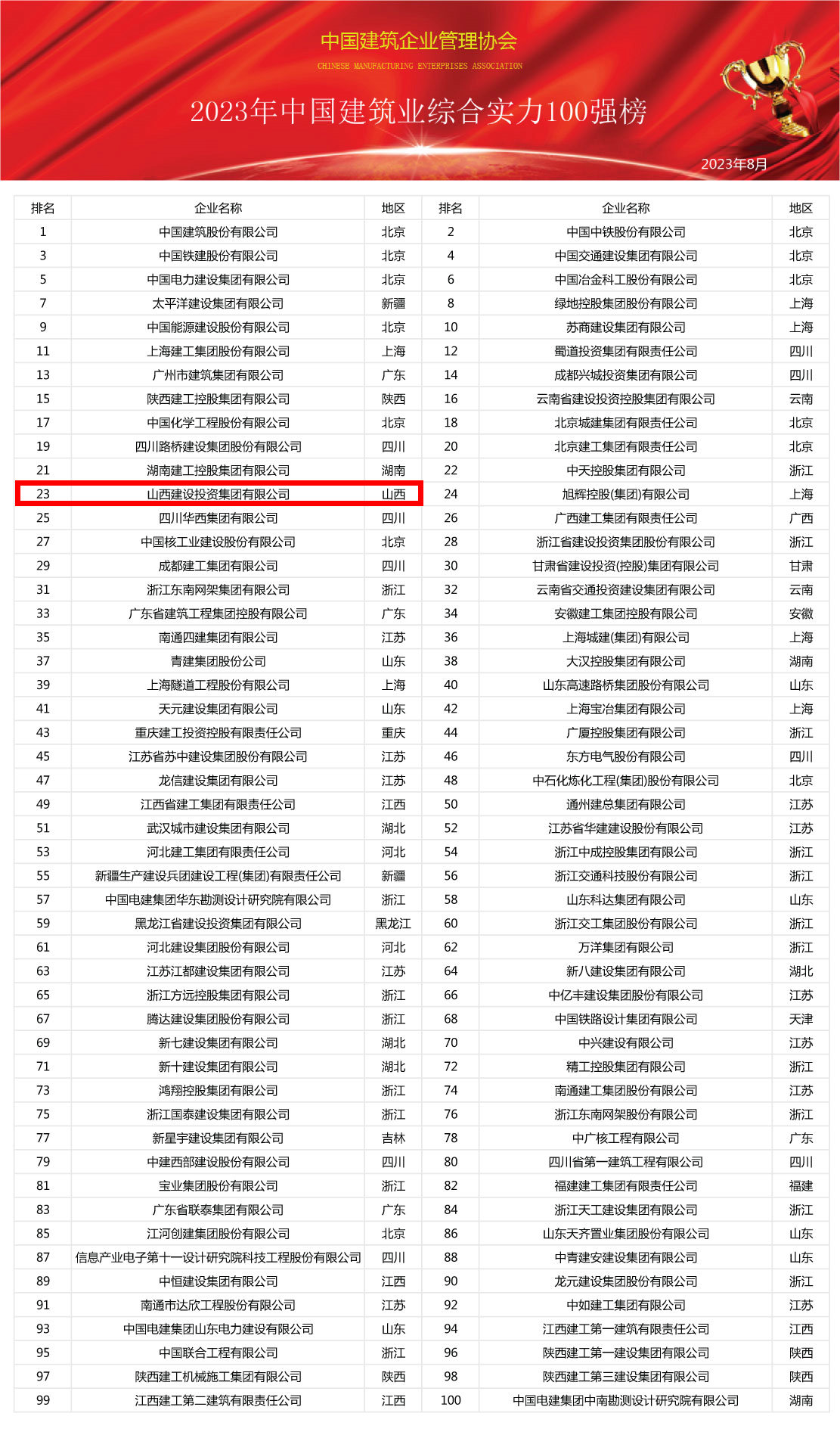 展望未來,相信在這100強(qiáng)企業(yè)的引領(lǐng)下,中國(guó)建筑業(yè)將繼續(xù)秉持創(chuàng)新、協(xié)調(diào)、綠色、開放、共享的發(fā)展理念,不斷提升自身綜合實(shí)力。以匠心鑄就精品工程,為國(guó)家建設(shè)和人民的幸福生活添磚加瓦,在實(shí)現(xiàn)中華民族偉大復(fù)興的壯麗征程中書寫更加輝煌燦爛的篇章。