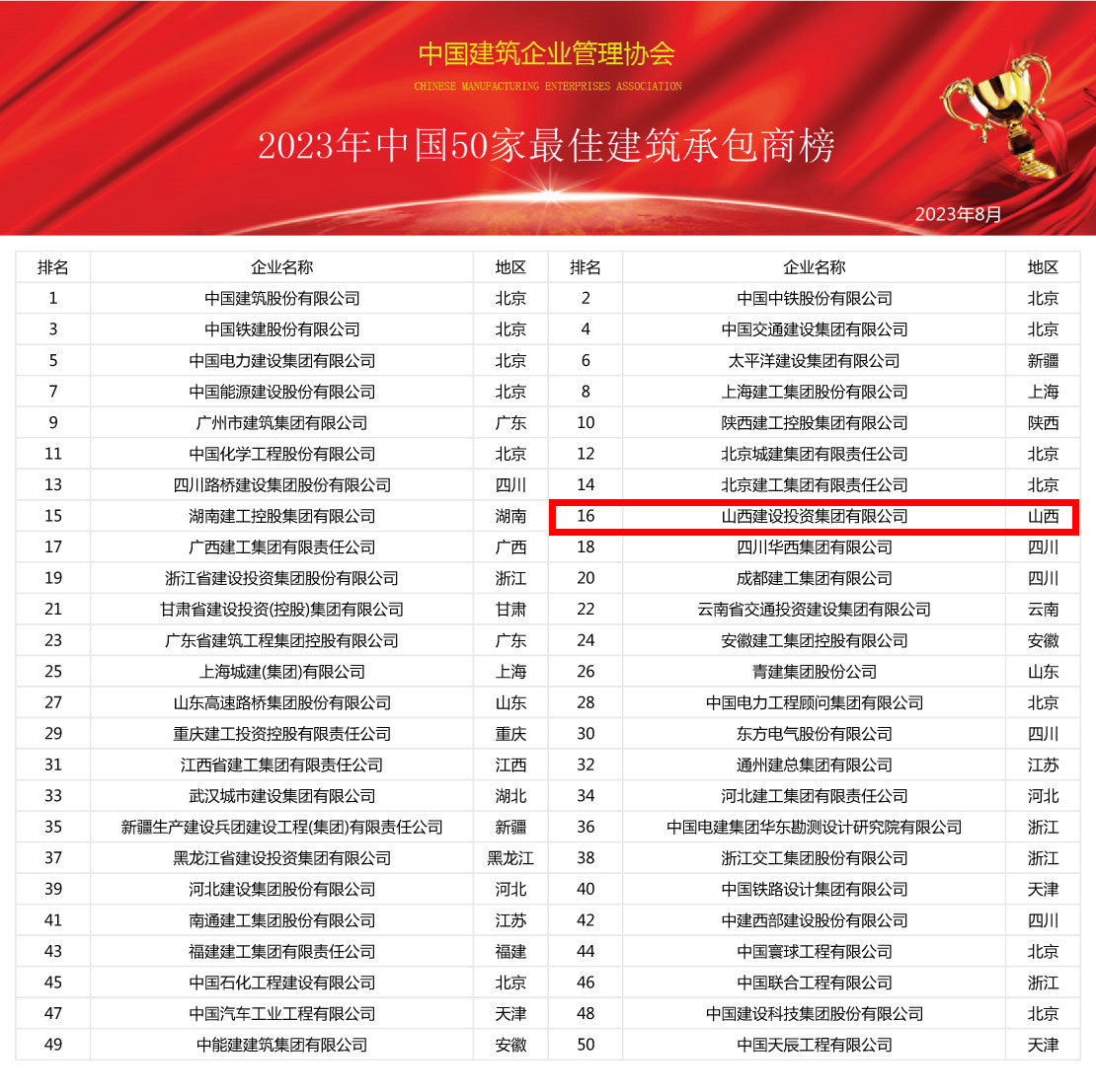 在經(jīng)濟(jì)發(fā)展的浪潮中,建筑業(yè)始終是國(guó)家建設(shè)的中流砥柱。近日,由中國(guó)建筑企業(yè)管理協(xié)會(huì)隆重發(fā)布的“2024年中國(guó)建筑業(yè)綜合實(shí)力100強(qiáng)榜暨中國(guó)50家最佳建筑承包商”,這不僅是對(duì)建筑企業(yè)的一次高度認(rèn)可,更是為行業(yè)發(fā)展樹立了新的標(biāo)桿。