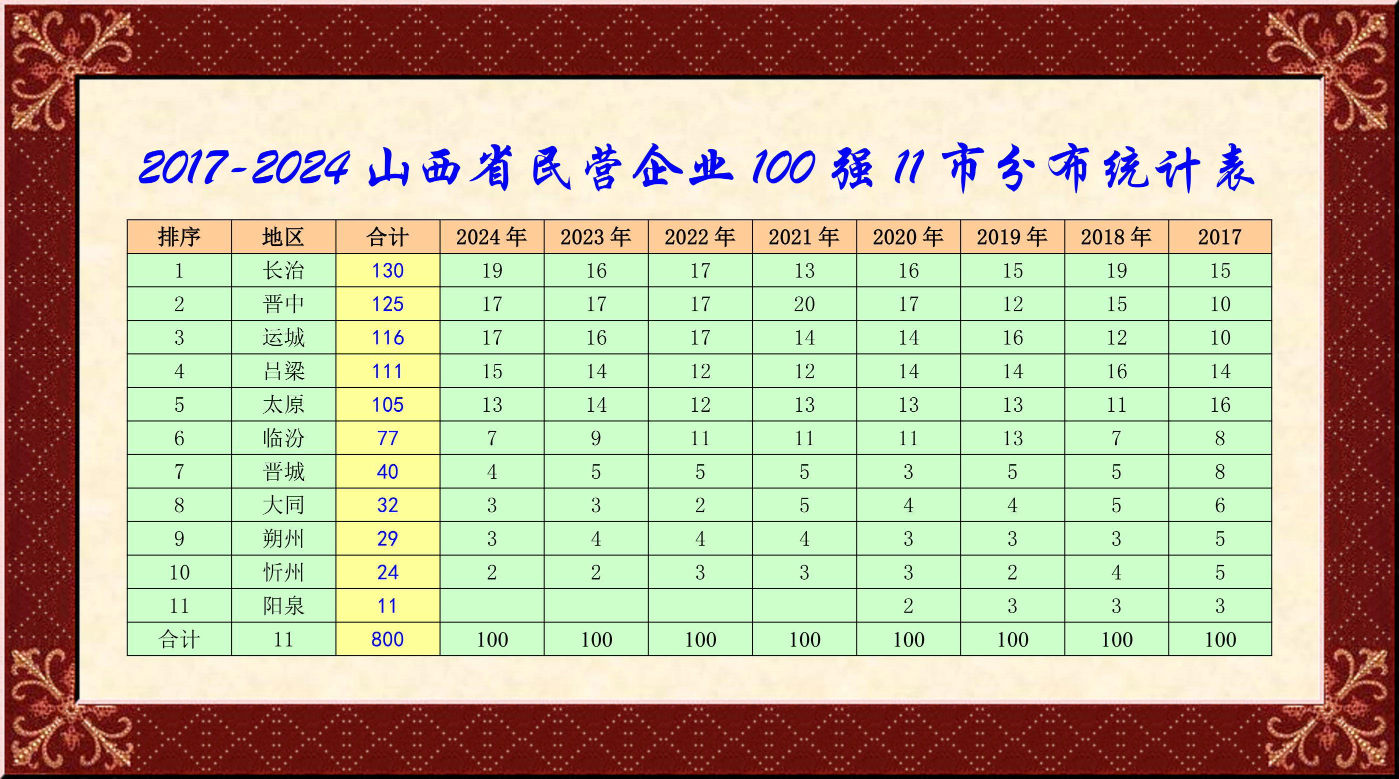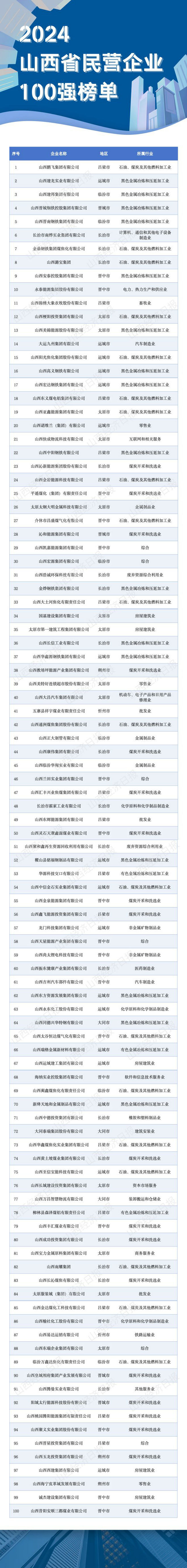 山西民企百強榜單,已連續發布8年。百強民企作為山西民營經濟發展的晴雨表、轉型發展的風向標,是引領民營經濟發展技術創新的骨干力量,更是民營經濟發展進步的縮影。
