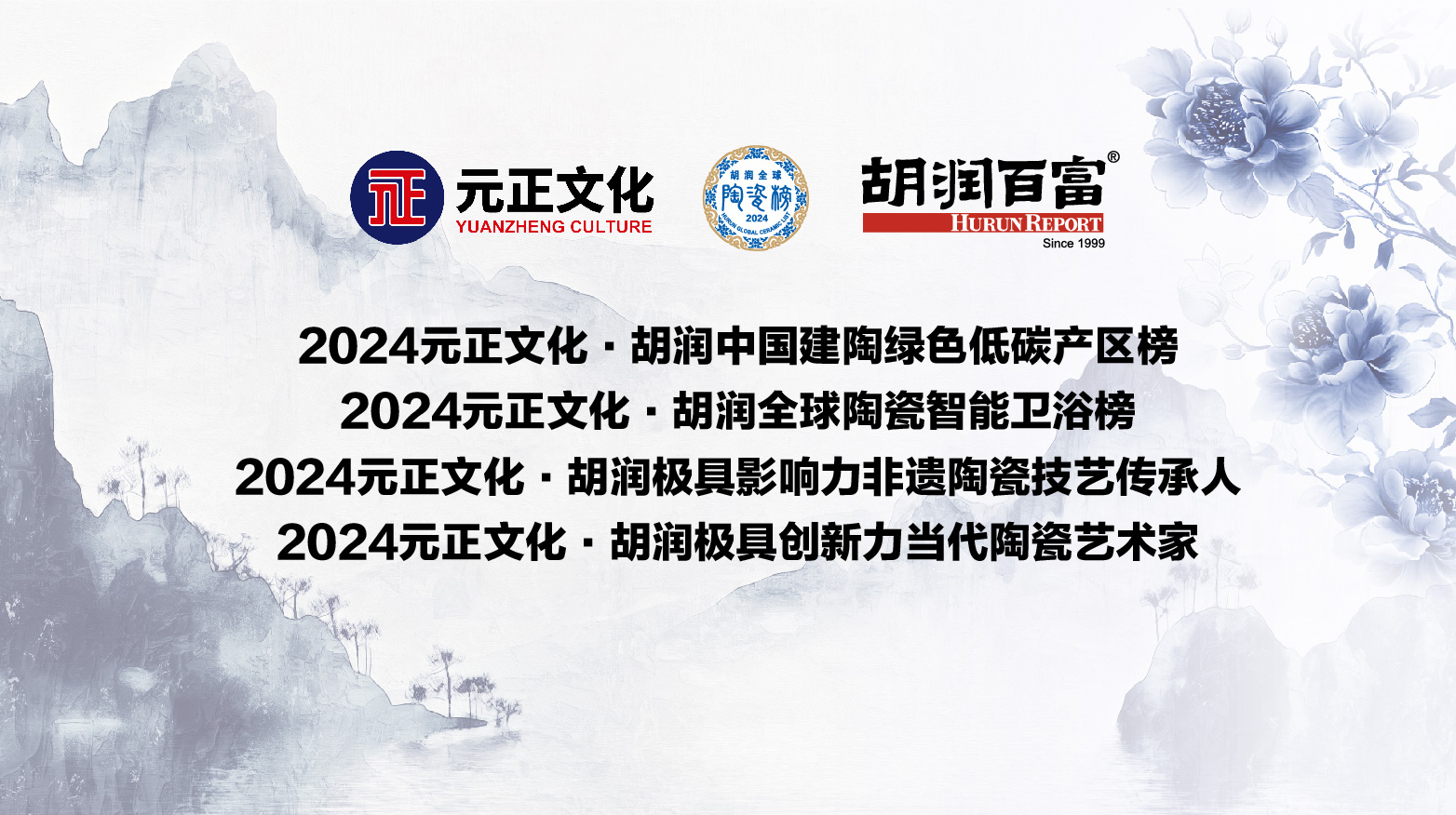 (2025年5月27日,上海)提供有質(zhì)量的榜單與調(diào)研的胡潤研究院攜手元正文化,今日發(fā)布《2024元正文化?胡潤中國建陶綠色低碳產(chǎn)區(qū)榜》(YuanzhengCulture?HurunMostSustainableChinaCitiesforCeramicManufacturing2024),列出了中國建筑陶瓷行業(yè)綠色低碳表現(xiàn)最優(yōu)的十大產(chǎn)區(qū)。同時發(fā)布《2024元正文化?胡潤全球陶瓷智能衛(wèi)浴榜》(YuanzhengCulture?HurunGlobalSmartBathroomBrands2024),列出了以智能衛(wèi)浴為發(fā)展重點的全球最具價值陶瓷企業(yè)TOP20。這是胡潤研究院連續(xù)第二年發(fā)布陶瓷領(lǐng)域相關(guān)榜單。