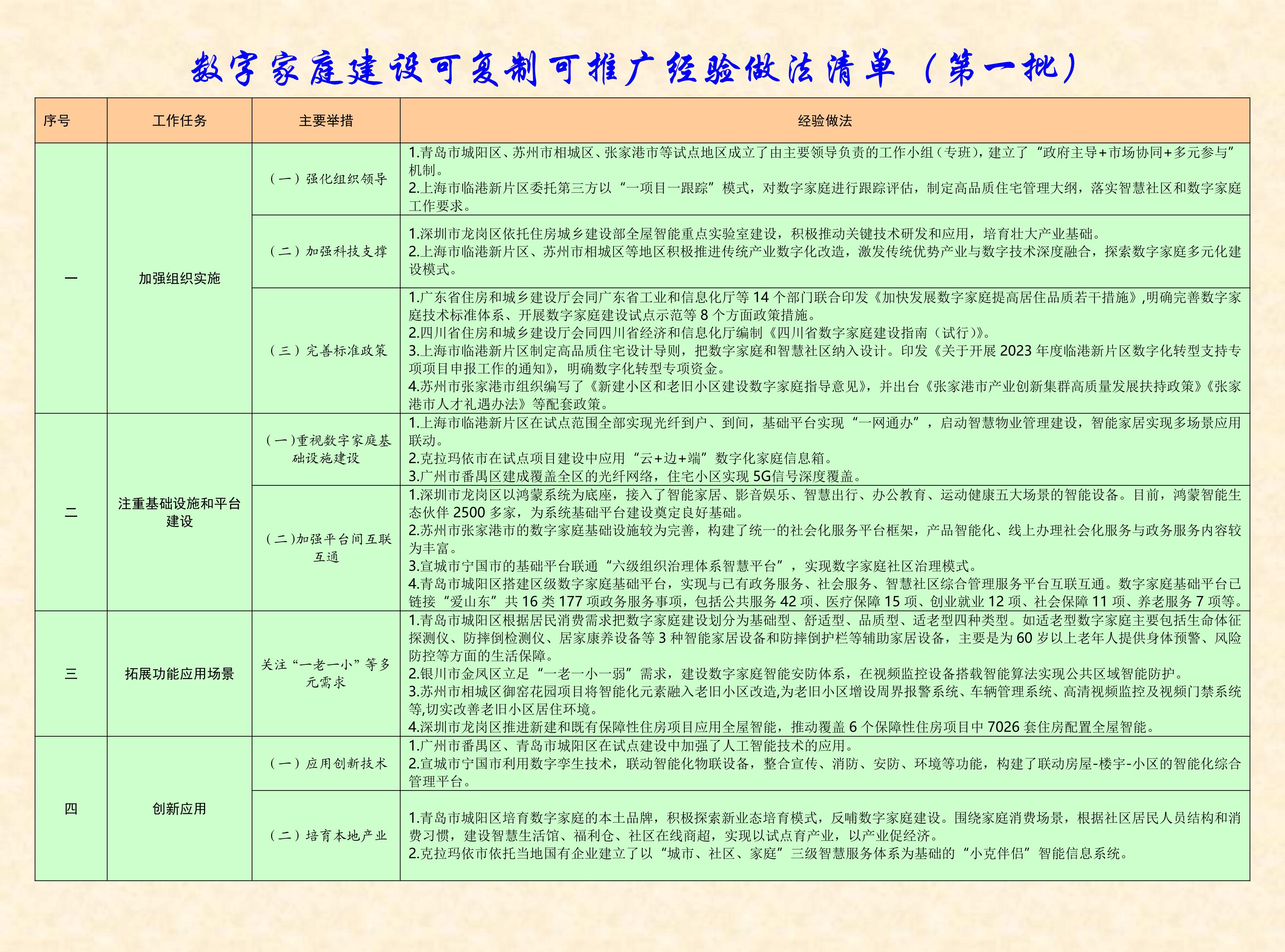 附件:數字家庭建設可復制可推廣經驗做法清單(第二批)