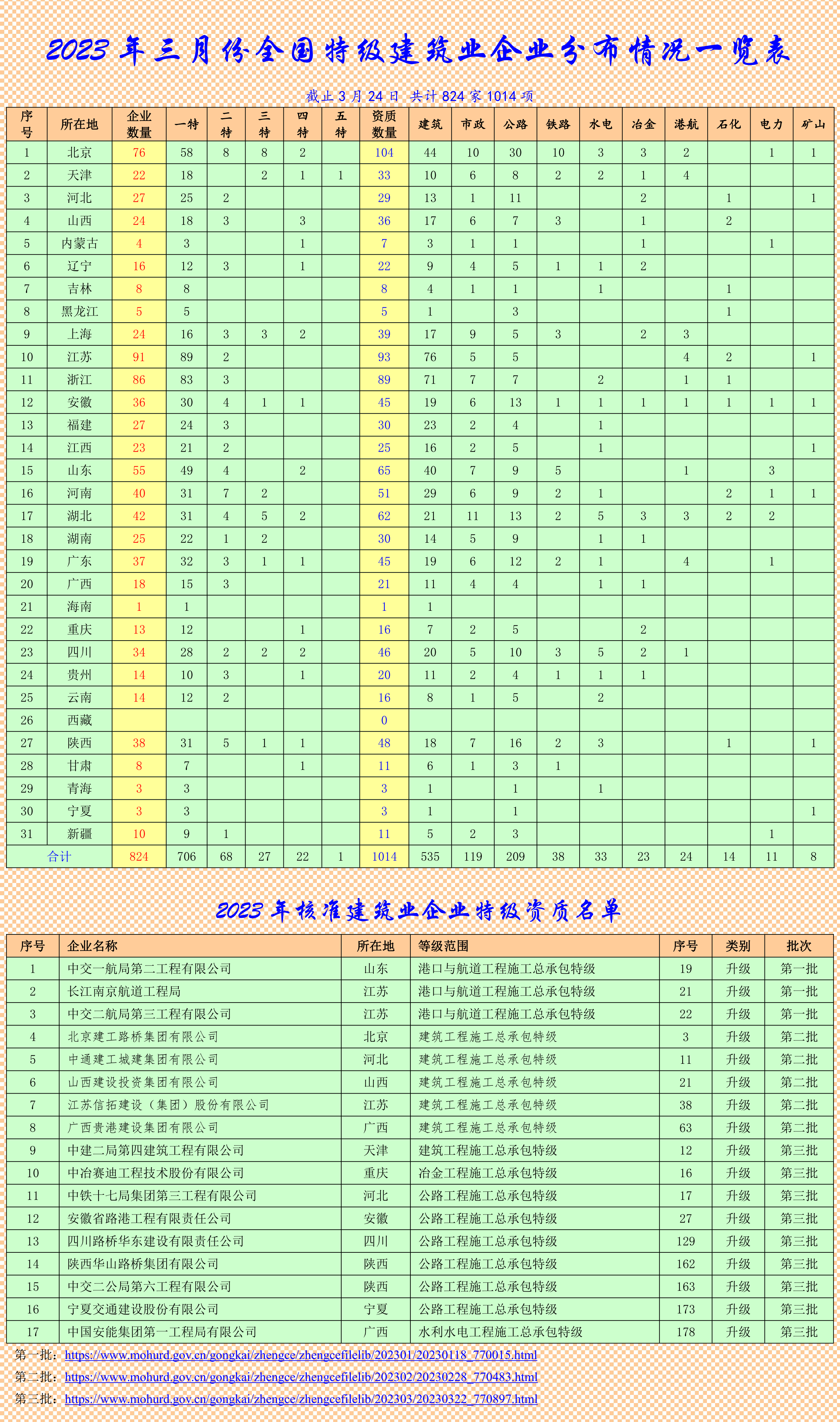 根據《中華人民共和國建筑法》及有關建設工程企業資質管理規定,現將我部核準的工程勘察資質、工程設計資質、建筑業企業資質、工程監理企業資質的單位名單(2023年度第三批)予以公布。未予核準的單位可登錄住房和城鄉建設部門戶網站-政務服務平臺,點擊“辦事服務”中“申請事項辦理進度查詢(受理發證信息查詢)”欄目查詢原因。