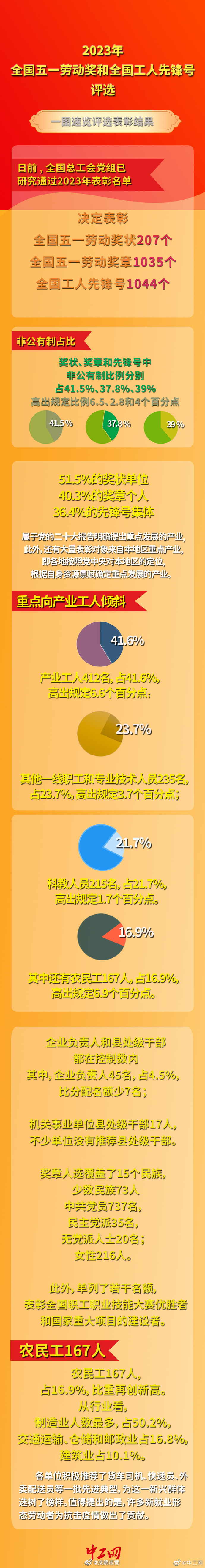 207個集體和1035名個人分獲全國五一勞動獎狀、獎章,1044個集體獲全國工人先鋒號。