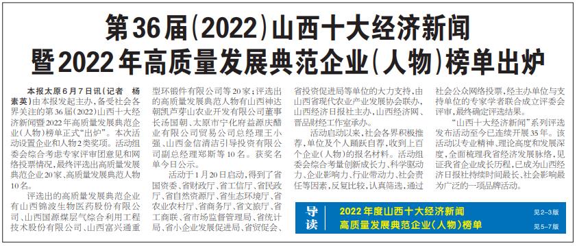 2022山西十大經(jīng)濟新聞系列評選活動高質(zhì)量發(fā)展典范企業(yè)榜單