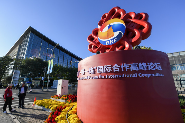 10月14日在北京國家會議中心附近拍攝的第三屆“一帶一路”國際合作高峰論壇景觀布置。新華社記者 鞠煥宗 攝