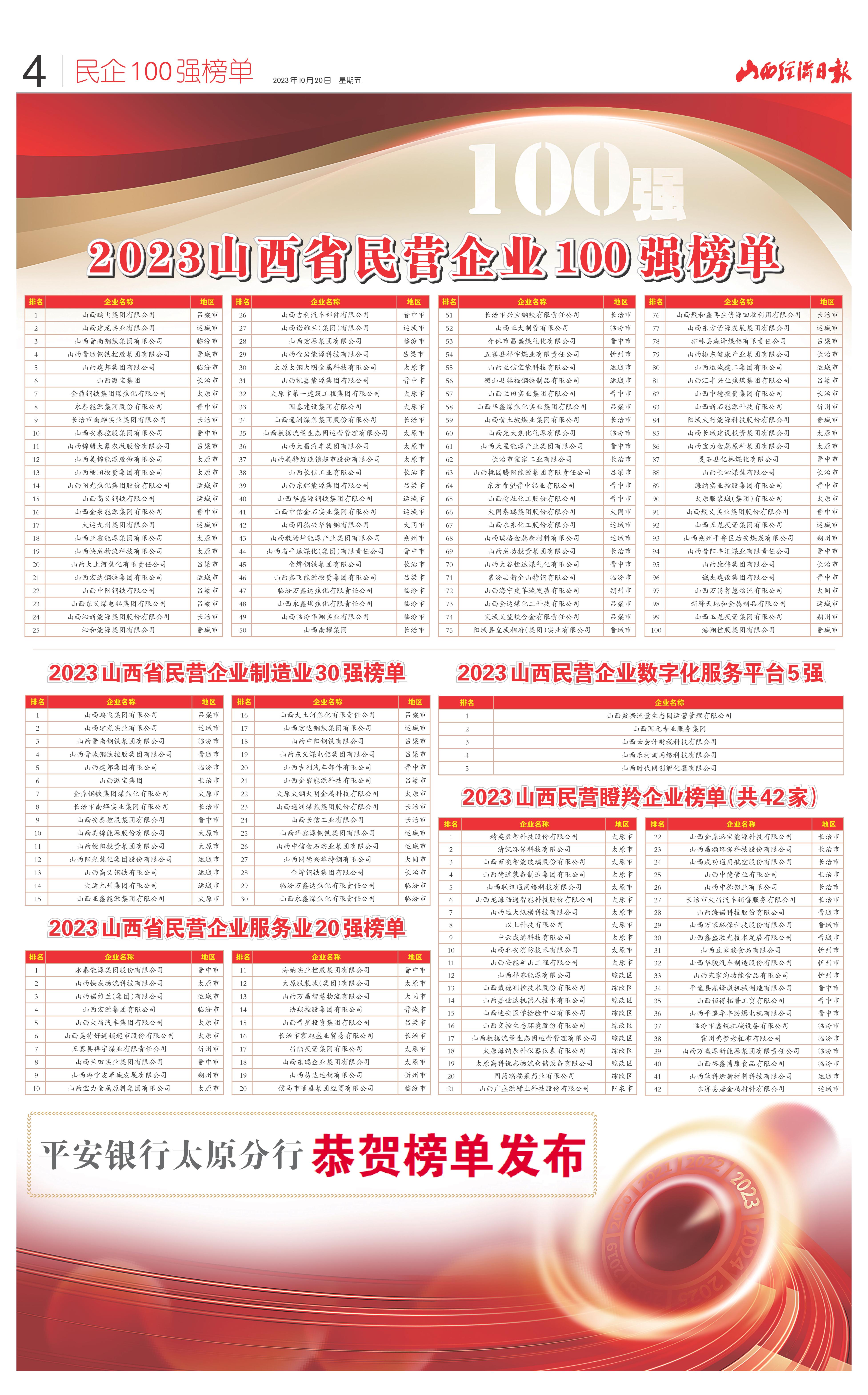 2023山西省民營(yíng)企業(yè)100強(qiáng)榜單