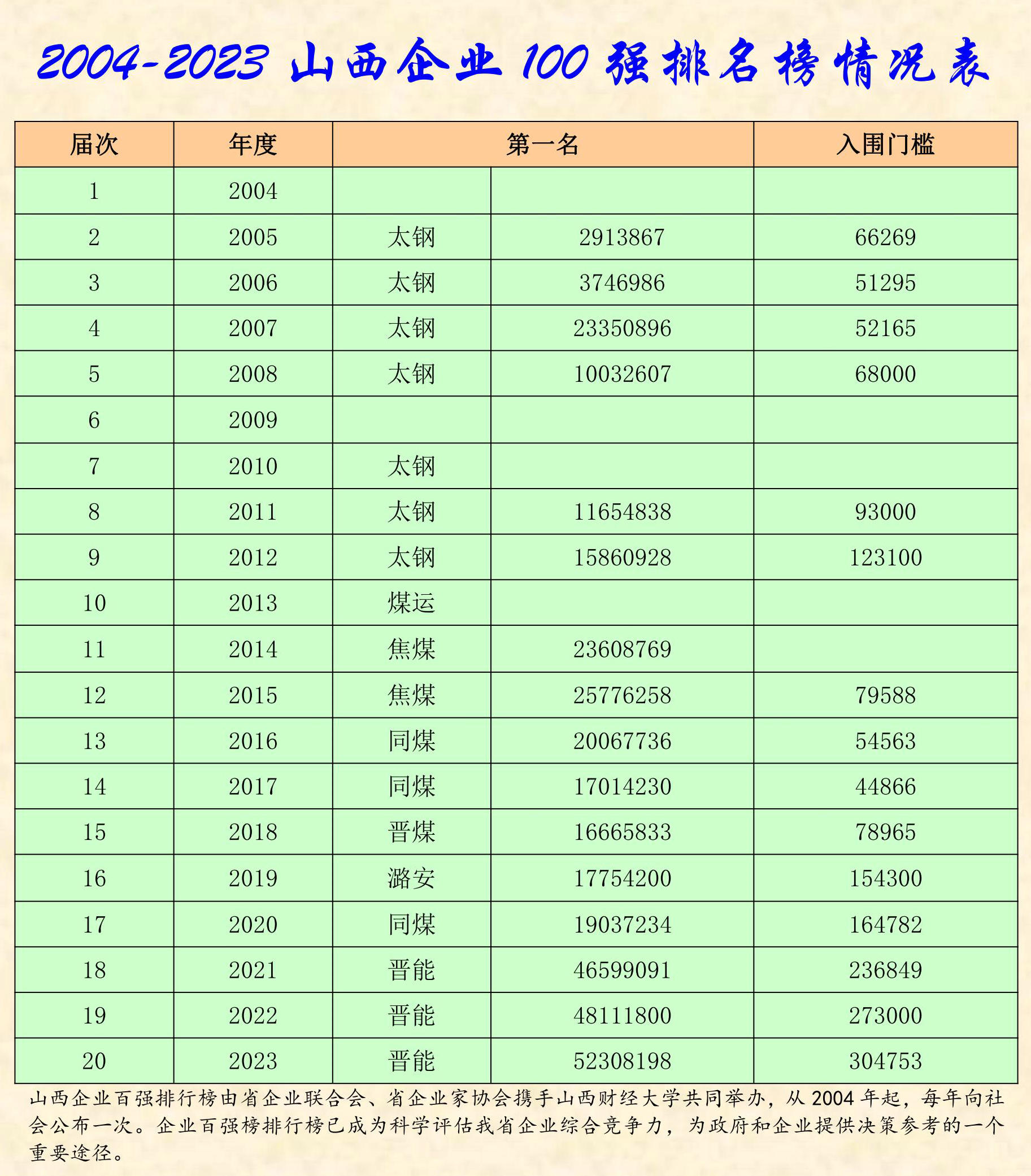 2023山西企業100強的入圍門檻為30.48億元,比去年山西企業入圍門檻27.3億元提高了3.18億元,入圍門檻再創新高。
