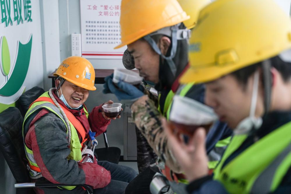 12月12日,在位于北京市海淀區的一處工地上,工人在喝姜茶驅寒。新華社記者 彭子洋 攝