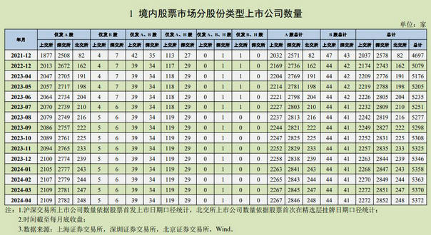 截至4月末,境內(nèi)股票市場共有上市公司5372家,滬、深、北證券交易所分別為2272、2852、248家。分股份類型統(tǒng)計(jì),僅發(fā)A股公司5139家,僅發(fā)B股公司11家,A+B、A+H等多股份類型的公司222家;分控股類型,國有控股和非國有控股公司數(shù)量分別占比26%、74%;按省域劃分,廣東、浙江、江蘇上市公司家數(shù)分別為874、707、696家,匯集超40%上市公司。(記者姚均芳)