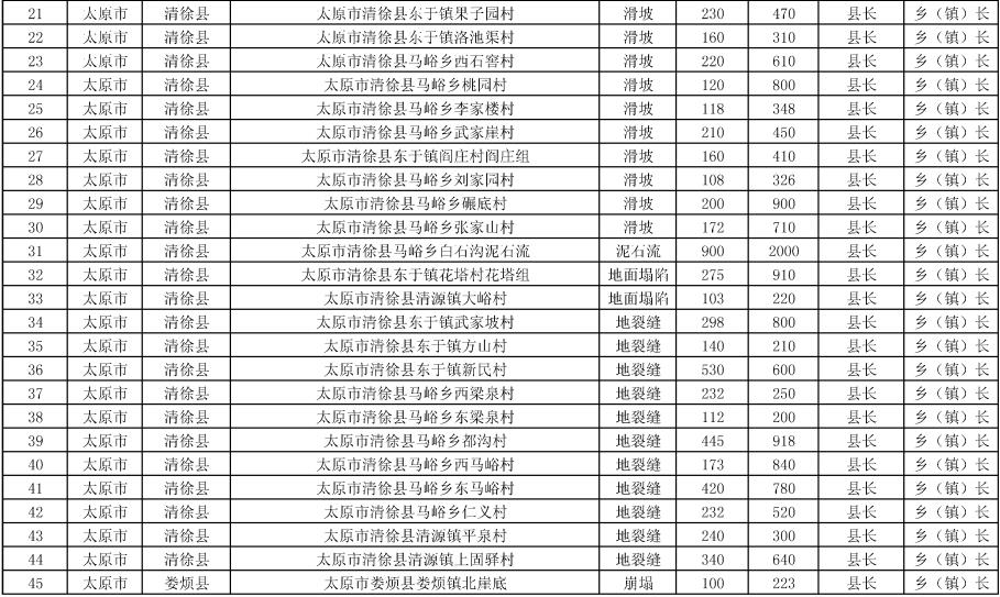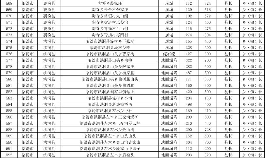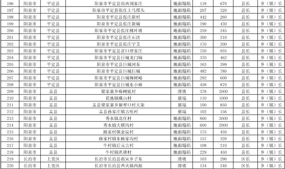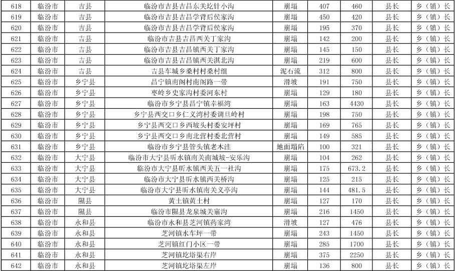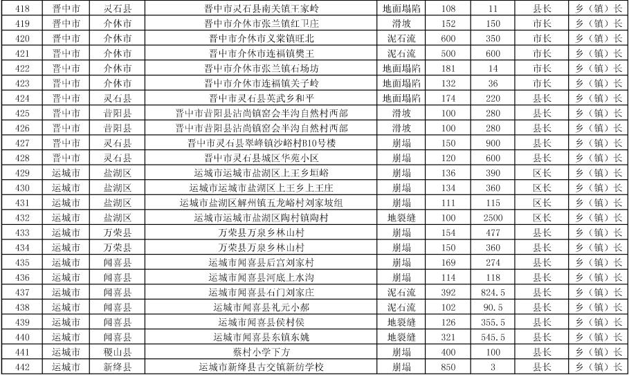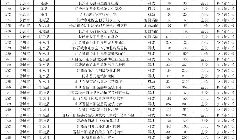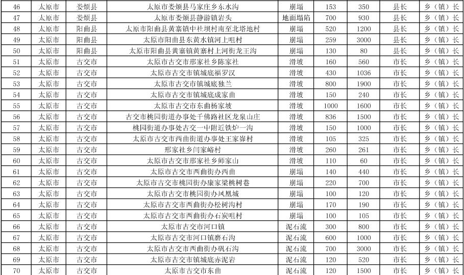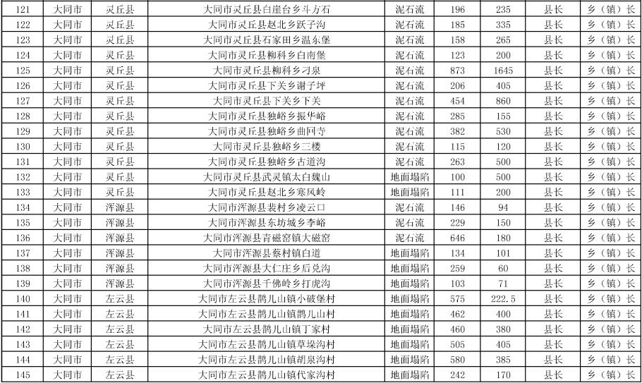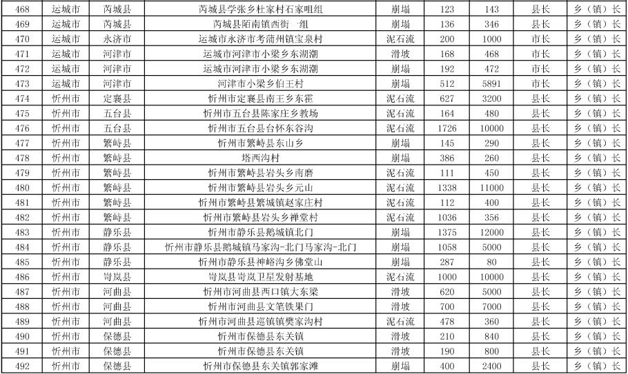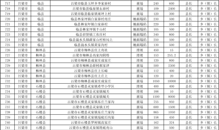 《方案》要求,強化治理搬遷,消除安全隱患。實施中央和省級資金安排9處地質災害治理工程項目。其中,河津市、夏縣、石樓縣、臨縣、永和縣、鄉寧縣、榆社縣各1處,武鄉縣2處。《方案》提出,要把縣級配套資金落實到位,加快項目施工進度,確保今年全部竣工;要推進中央和省級資金安排3397戶農村地質災害避險搬遷工作,落實市縣配套資金,明確時間節點進度,確保年底全面開工,2024年竣工入住。