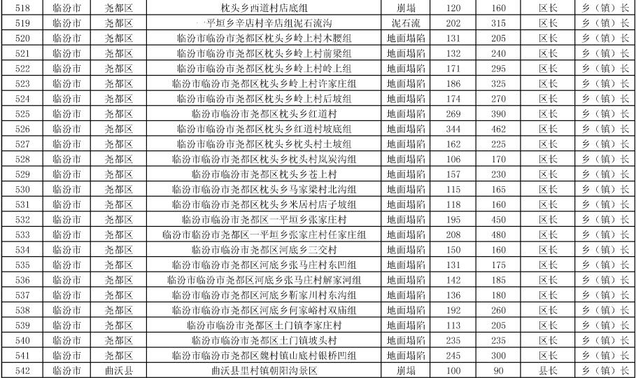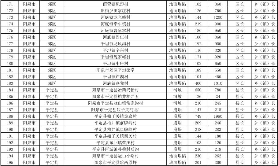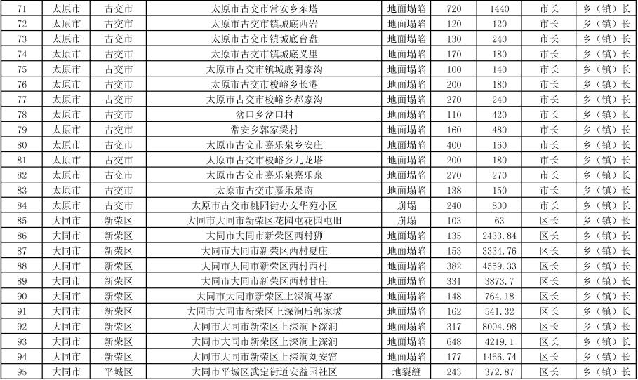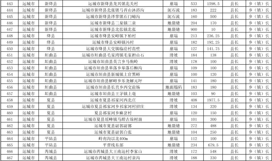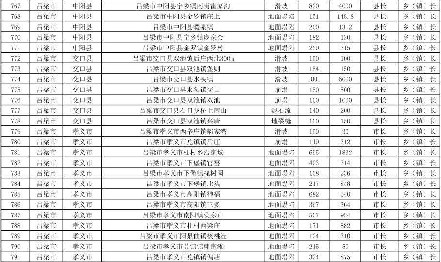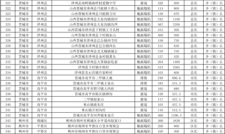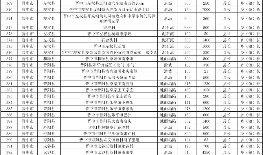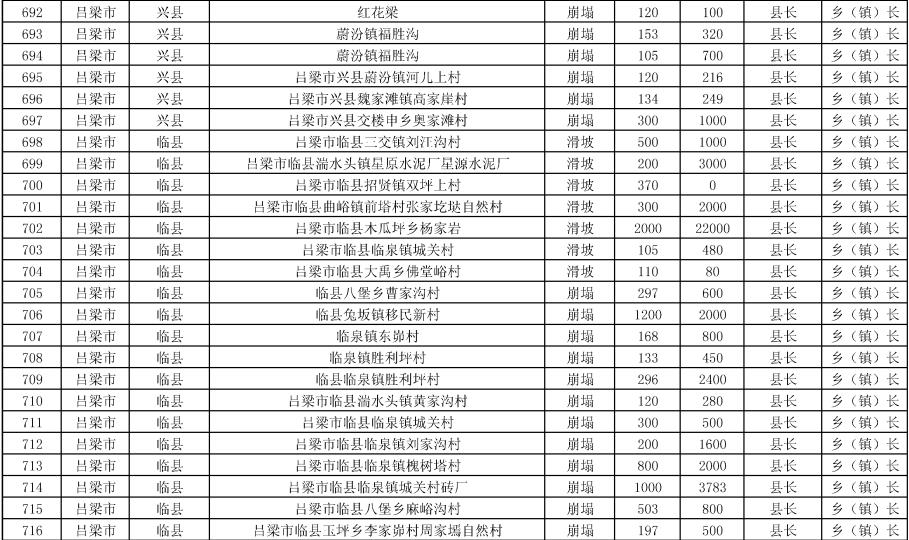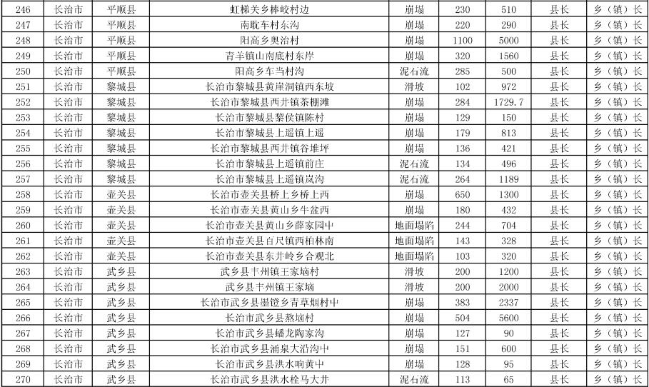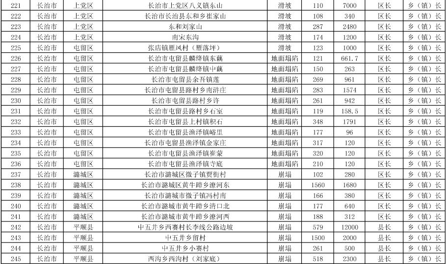 《方案》要求,強化治理搬遷,消除安全隱患。實施中央和省級資金安排9處地質災害治理工程項目。其中,河津市、夏縣、石樓縣、臨縣、永和縣、鄉寧縣、榆社縣各1處,武鄉縣2處。《方案》提出,要把縣級配套資金落實到位,加快項目施工進度,確保今年全部竣工;要推進中央和省級資金安排3397戶農村地質災害避險搬遷工作,落實市縣配套資金,明確時間節點進度,確保年底全面開工,2024年竣工入住。