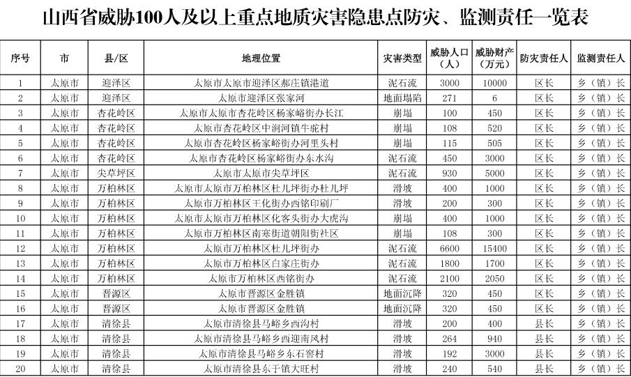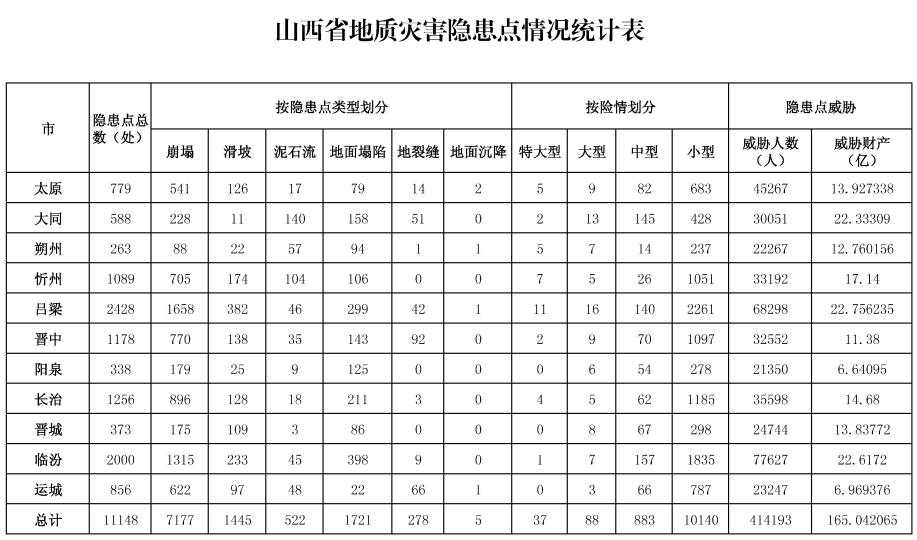 本報太原6月2日訊(記者王佳麗)省自然資源廳6月1日印發的《山西省2023年度地質災害防治方案》(以下簡稱《方案》),劃定了晉西黃土高原、太原西山—汾西—霍州—鄉寧—河津礦區、太原東山—陽泉—潞安—晉城—沁水礦區、嵐縣—靜樂礦區共4個崩塌、滑坡地質災害重點防治區。