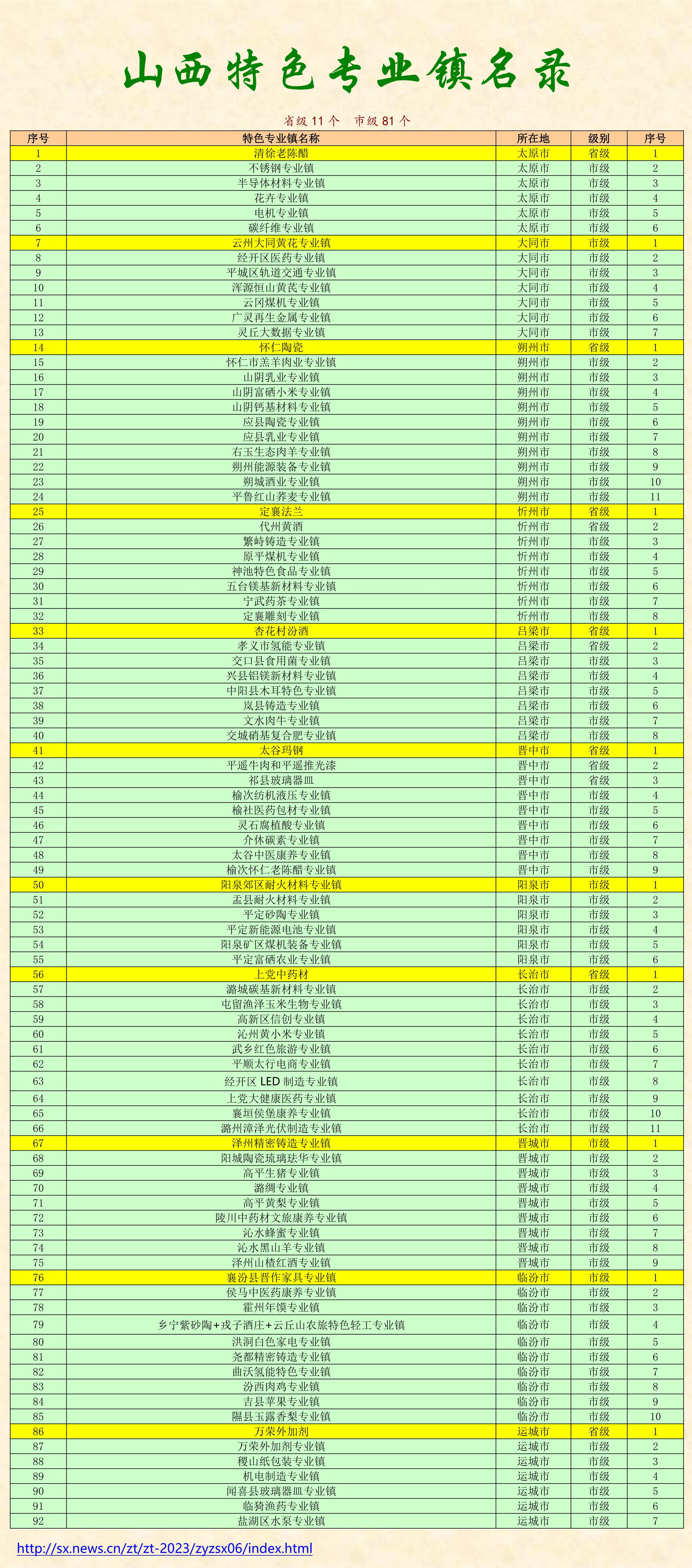 山西特色專(zhuān)業(yè)鎮(zhèn)名錄92個(gè)
