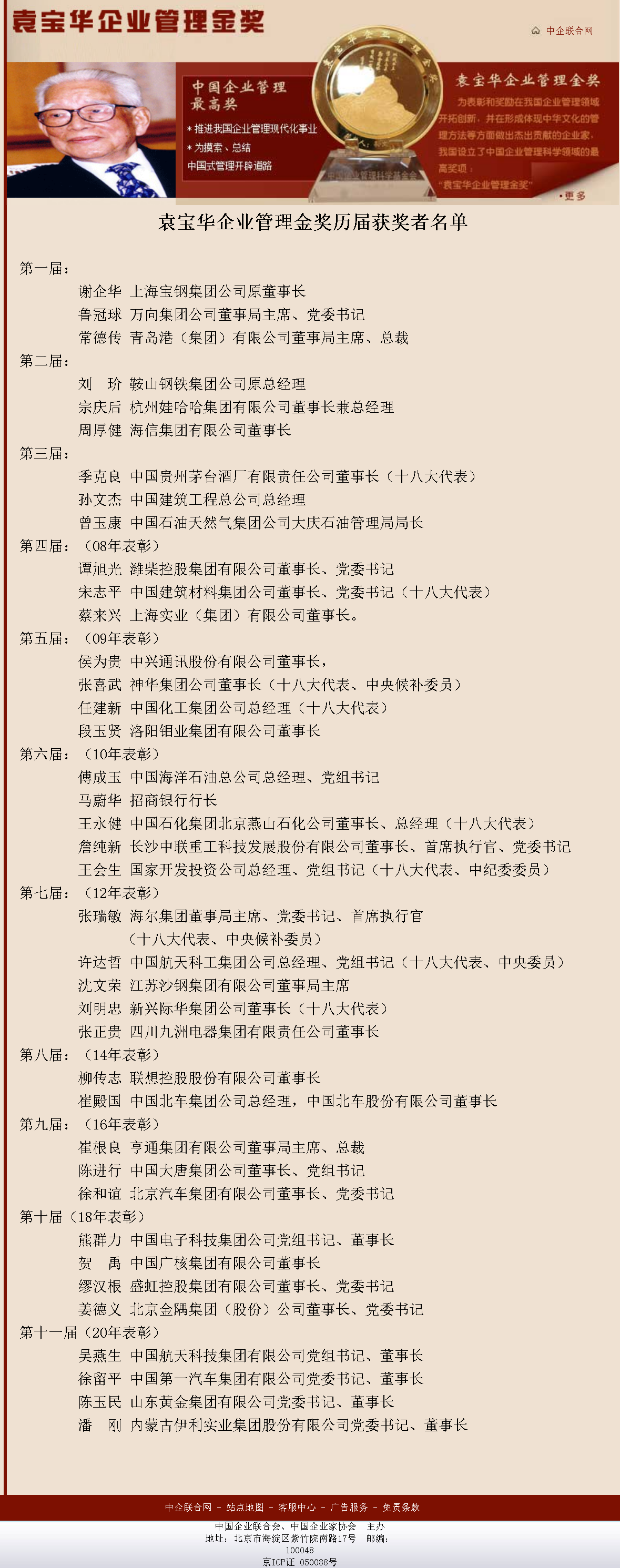 張瑞敏 海爾集團董事局主席、黨委書記、首席執行官(十八大代表、中央候補委員)