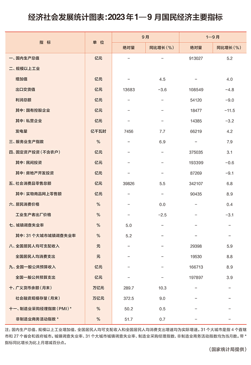 經濟社會發展統計圖表:2023年1—9月國民經濟主要指標