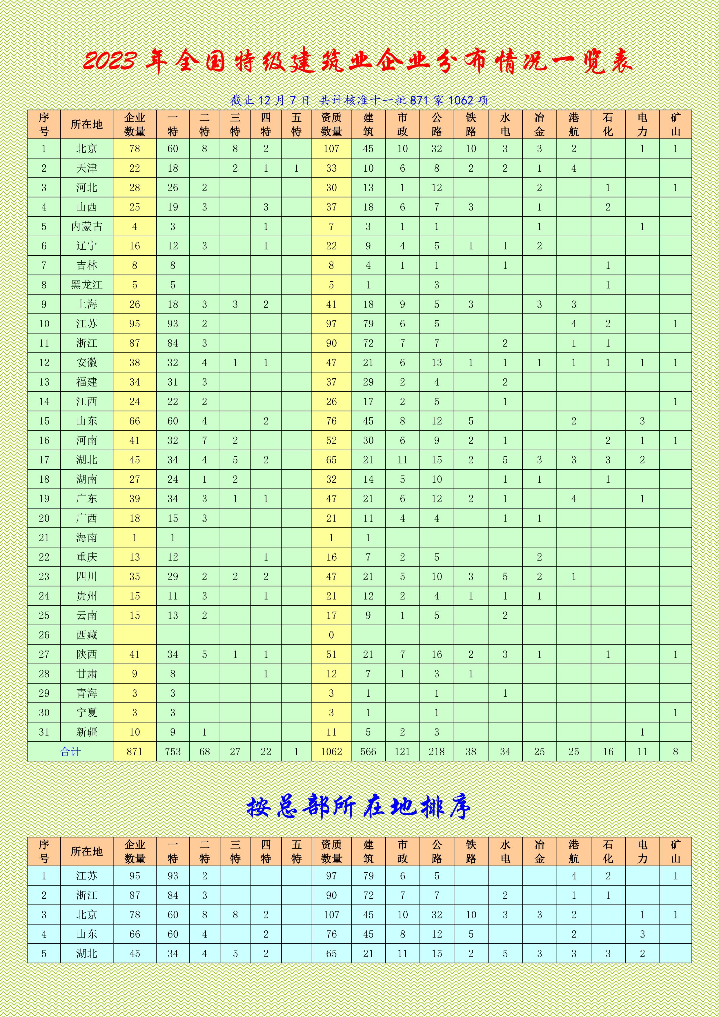2023年全國特級資質(zhì)建筑業(yè)企業(yè)名單