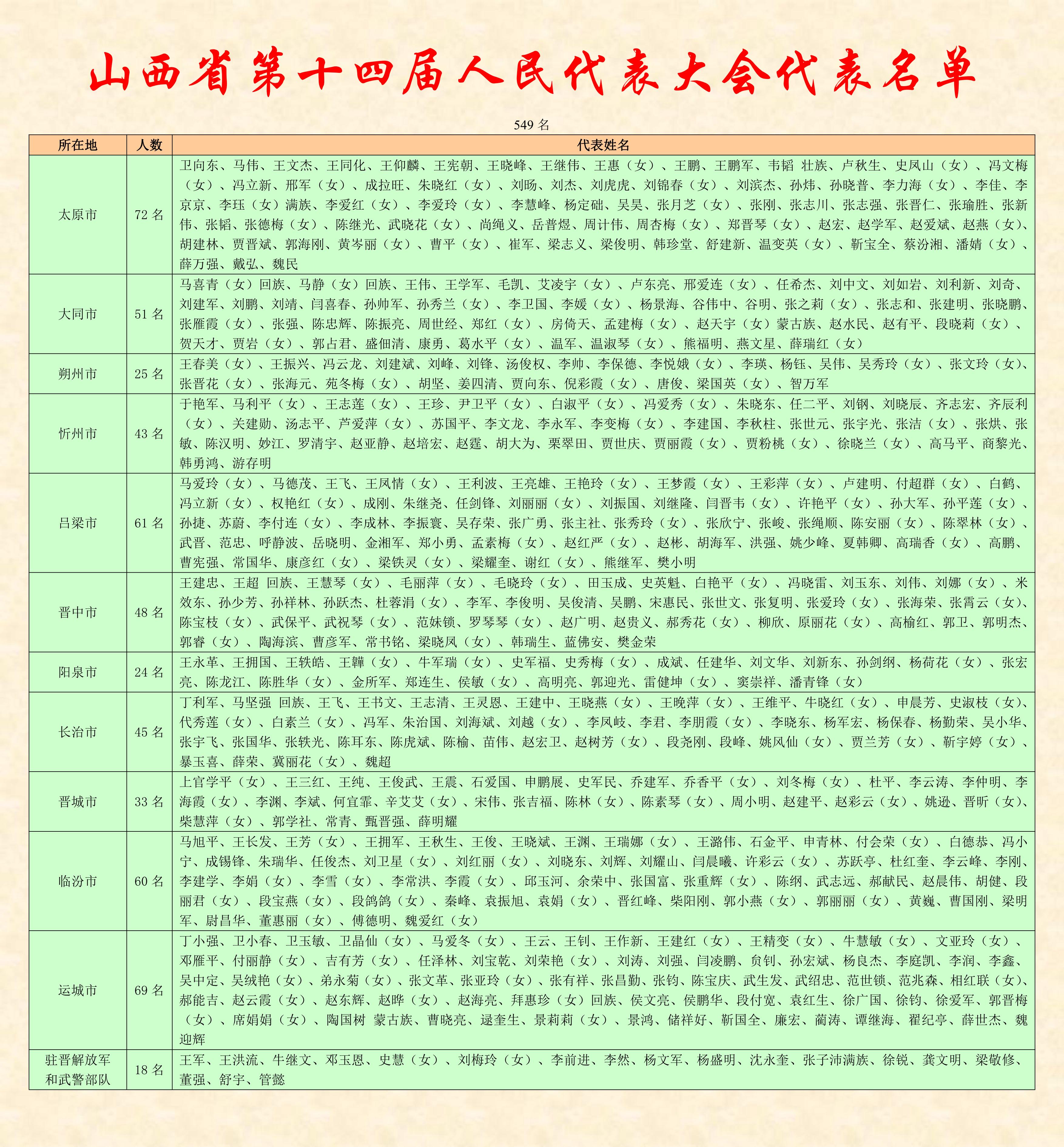 山西省第十四屆人民代表大會代表名單和中國人民政治協商會議第十三屆山西省委員會委員名單(各549名)