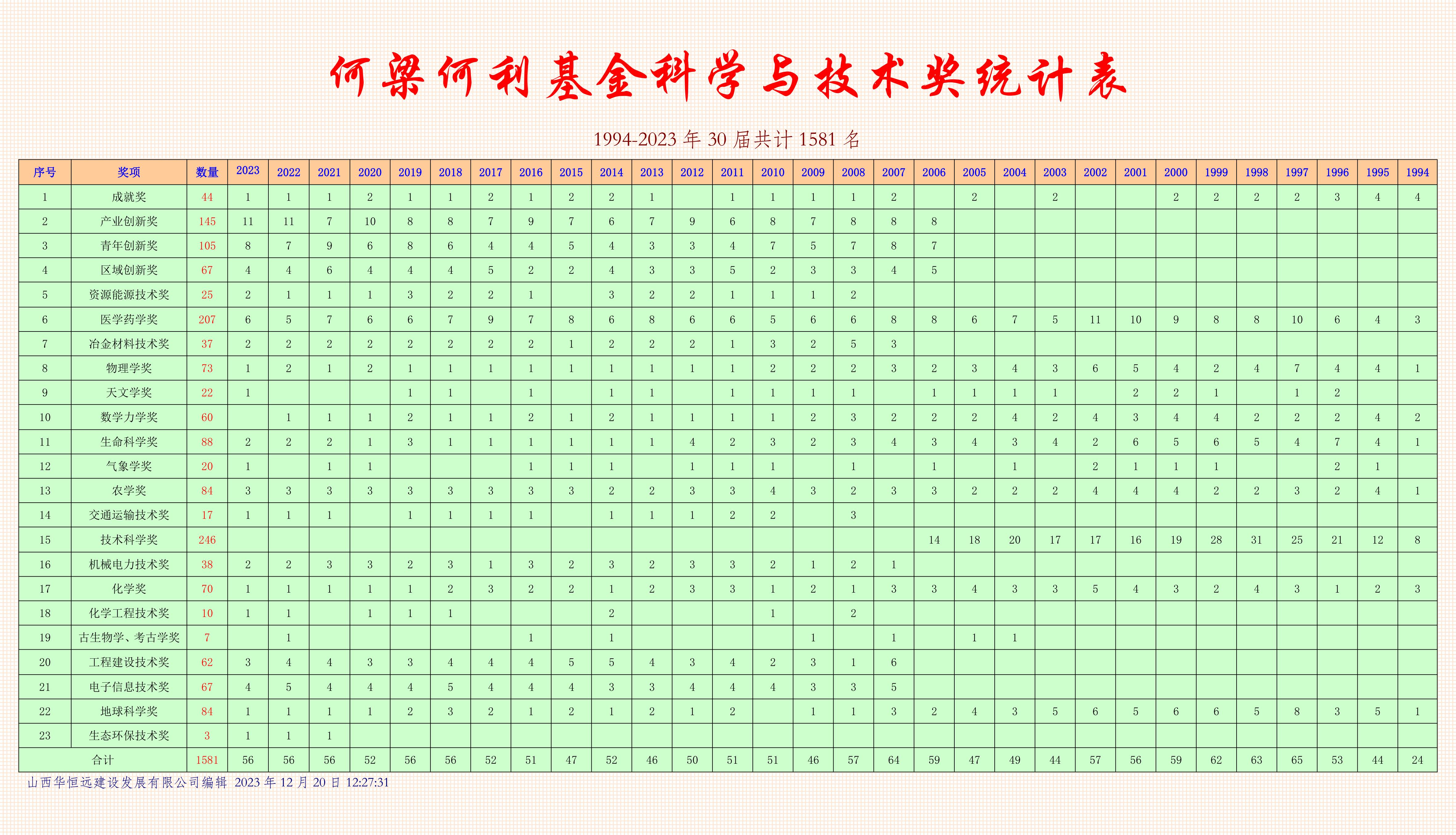 3. 黃汲清 中國地質科學院 男 成就獎 科學與技術成就獎 1994 23 23.