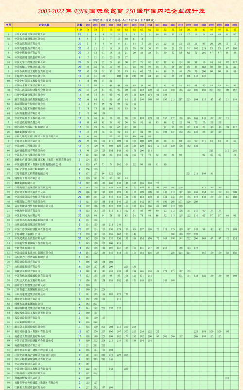 2003-2022年ENR國際承包商250強中國內地企業統計表