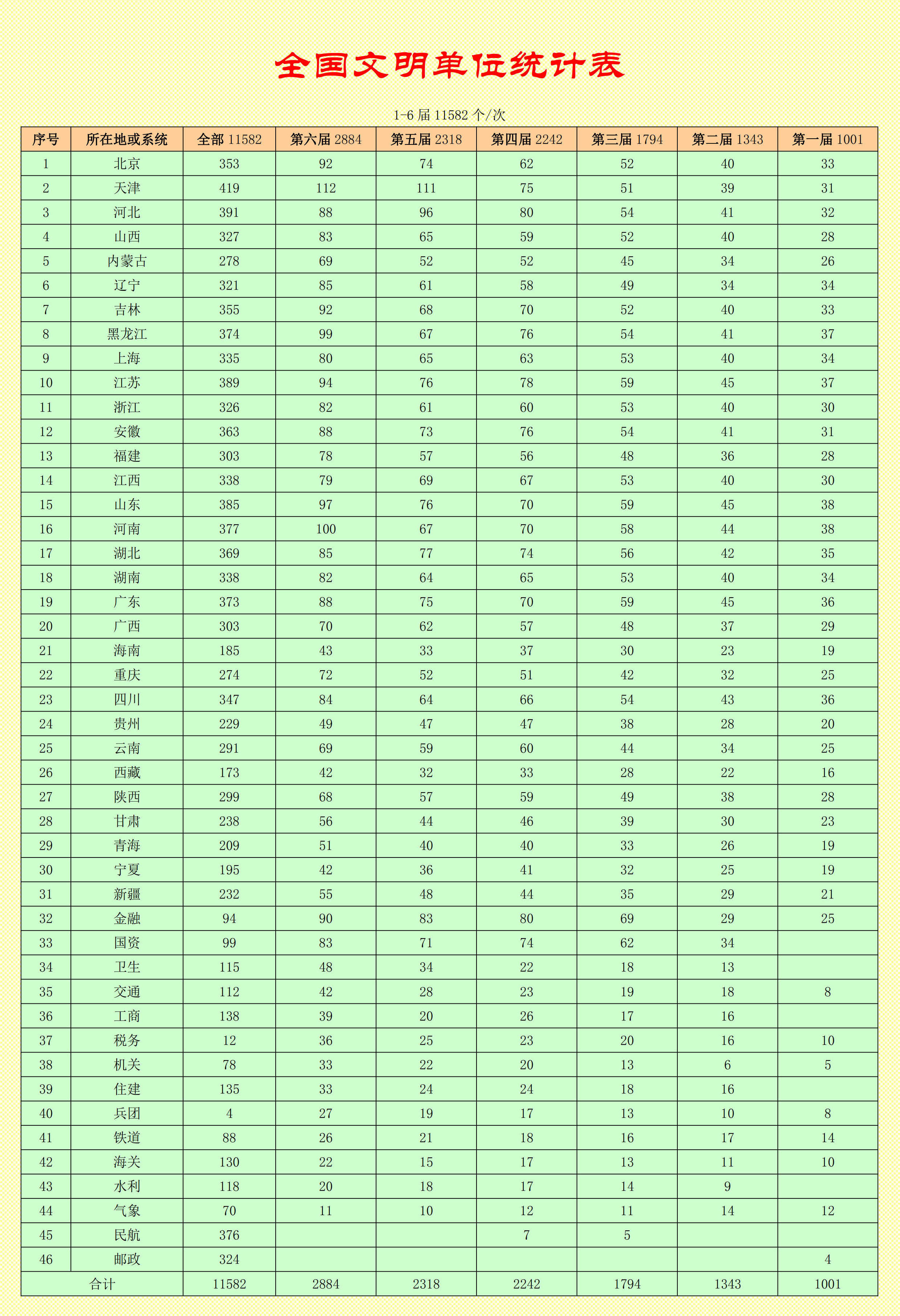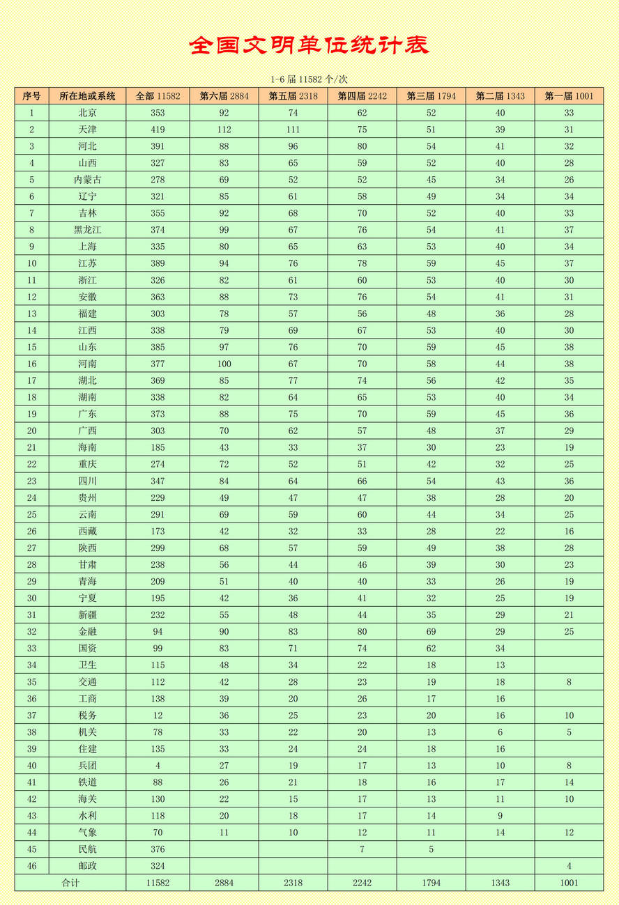 山西省榮獲全國文明單位(含駐晉中央企業)總榜單