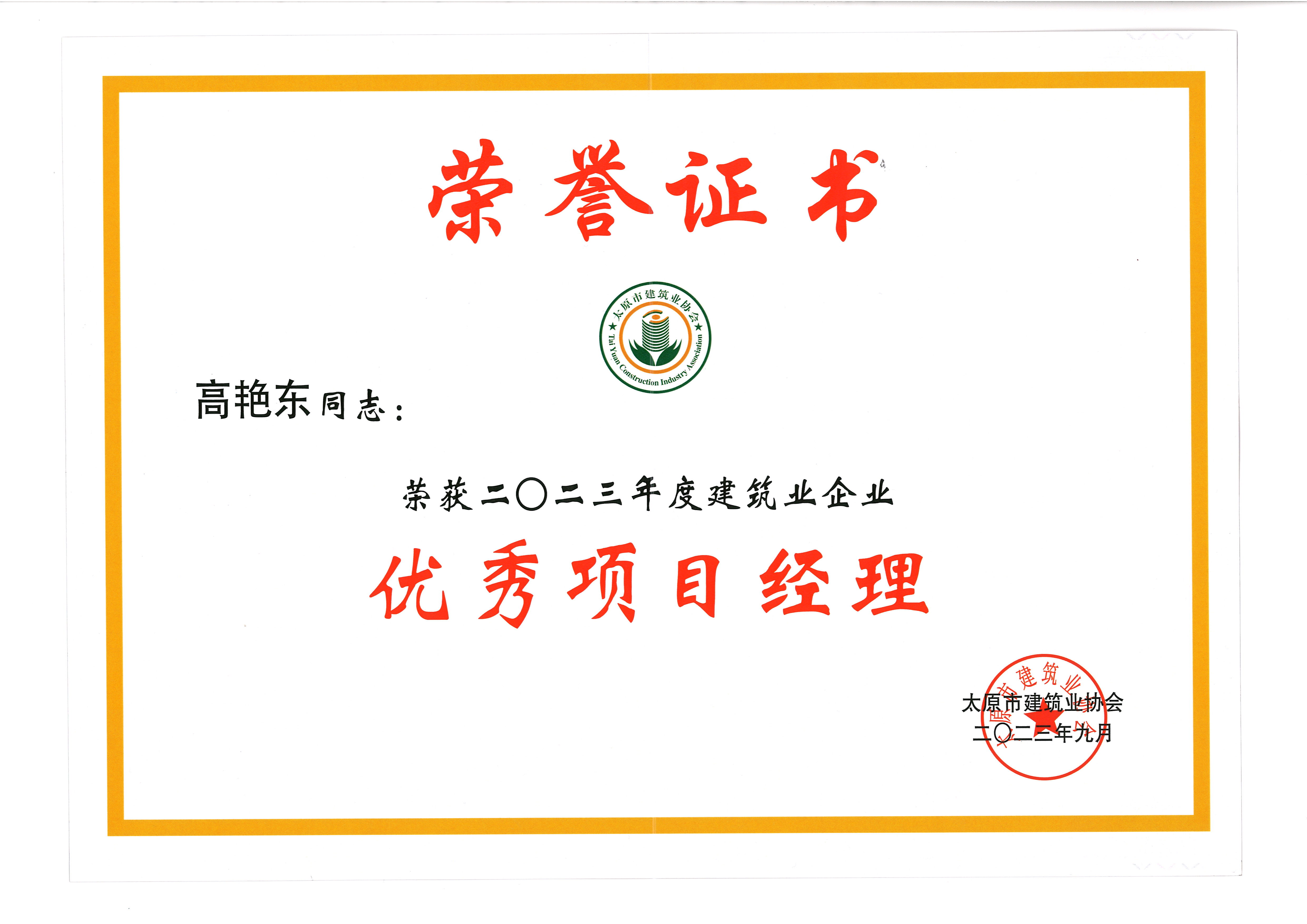 祝賀高艷東、張悅獲得優秀項目經理
