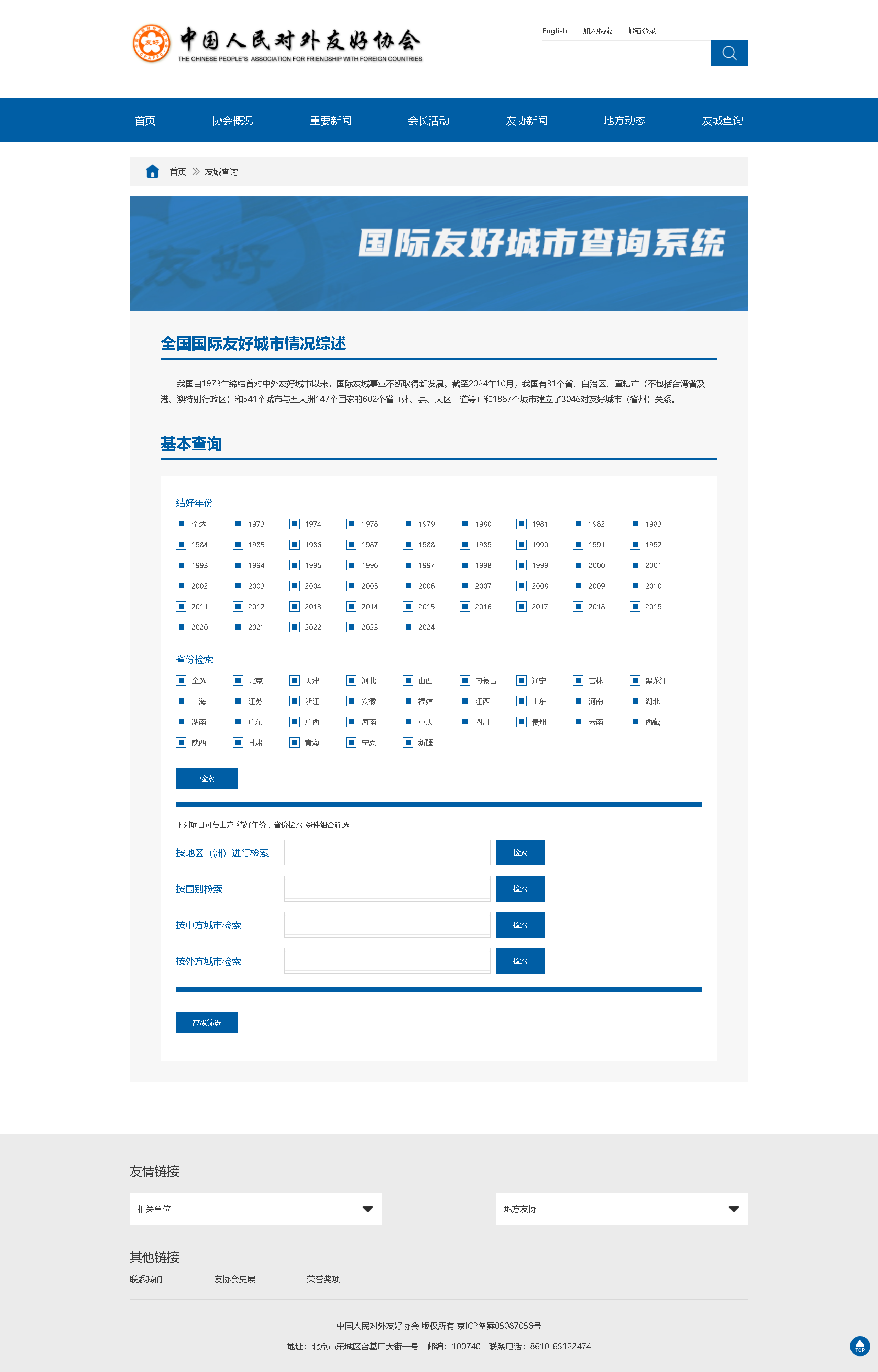 自1973年締結(jié)首對(duì)中外友好城市至今,我國(guó)31個(gè)省、自治區(qū)、直轄市和543個(gè)城市與147個(gè)國(guó)家的602個(gè)省州和1871個(gè)城市建立了3054對(duì)友好城市(省州)關(guān)系,建立起遍布五大洲的國(guó)際朋友圈和合作伙伴網(wǎng)。