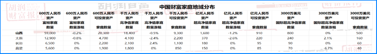 2月27日,胡潤(rùn)研究院發(fā)布《2024胡潤(rùn)財(cái)富報(bào)告》,揭示目前全國(guó)財(cái)富家庭的數(shù)量、地域分布和人群畫(huà)像。該《報(bào)告》顯示,太原市擁有千萬(wàn)元人民幣資產(chǎn)的“高凈值家庭”數(shù)量為4100戶,擁有億元人民幣資產(chǎn)的“超高凈值家庭”達(dá)370戶。