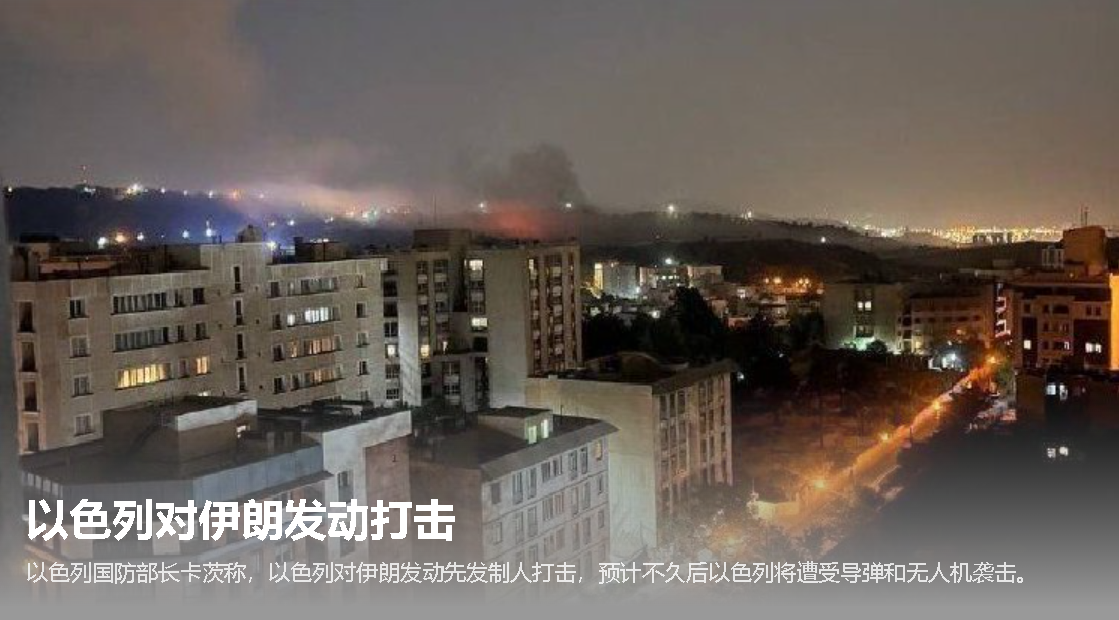 新華社德黑蘭/耶路撒冷6月13日電 據伊朗伊斯蘭共和國廣播電視臺13日報道,當地時間凌晨3時20分許,首都德黑蘭市區傳出巨大爆炸聲。新華社記者確認聽到兩三次爆炸聲。以色列總理內塔尼亞胡13日發表聲明說,以軍對伊朗的打擊會“持續多日”。以軍行動目標是“打擊伊朗核設施、彈道導彈工廠和軍事能力”。