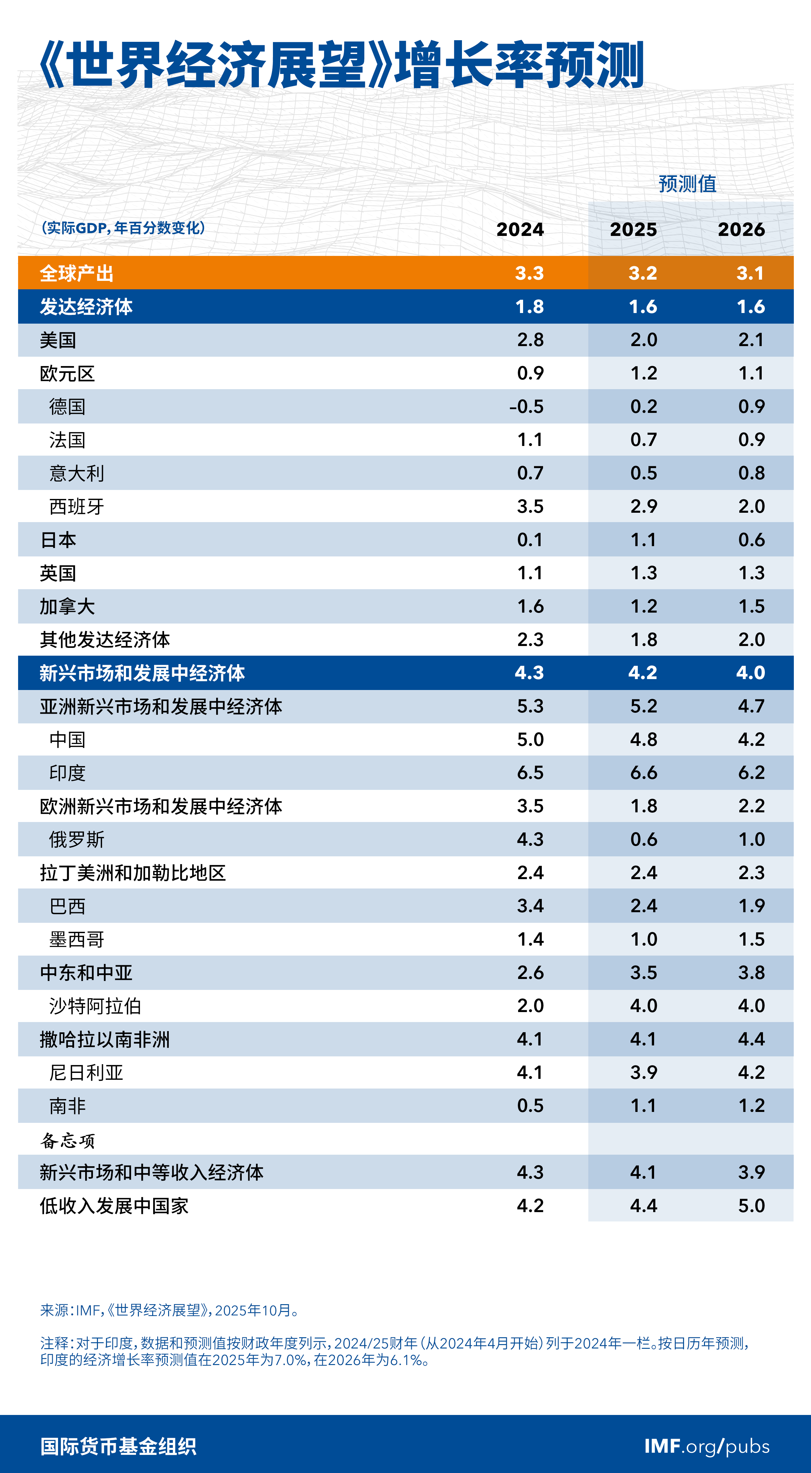 報(bào)告預(yù)計(jì),2025年世界經(jīng)濟(jì)將增長(zhǎng)3.2%,較今年7月預(yù)測(cè)值上調(diào)0.2個(gè)百分點(diǎn);2026年將增長(zhǎng)3.1%,與7月預(yù)測(cè)值持平。