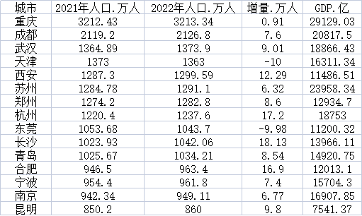 根據第一財經記者梳理,2022年,15個新一線城市新增人口合計達到了109.49萬人,成為人口增長的重點。