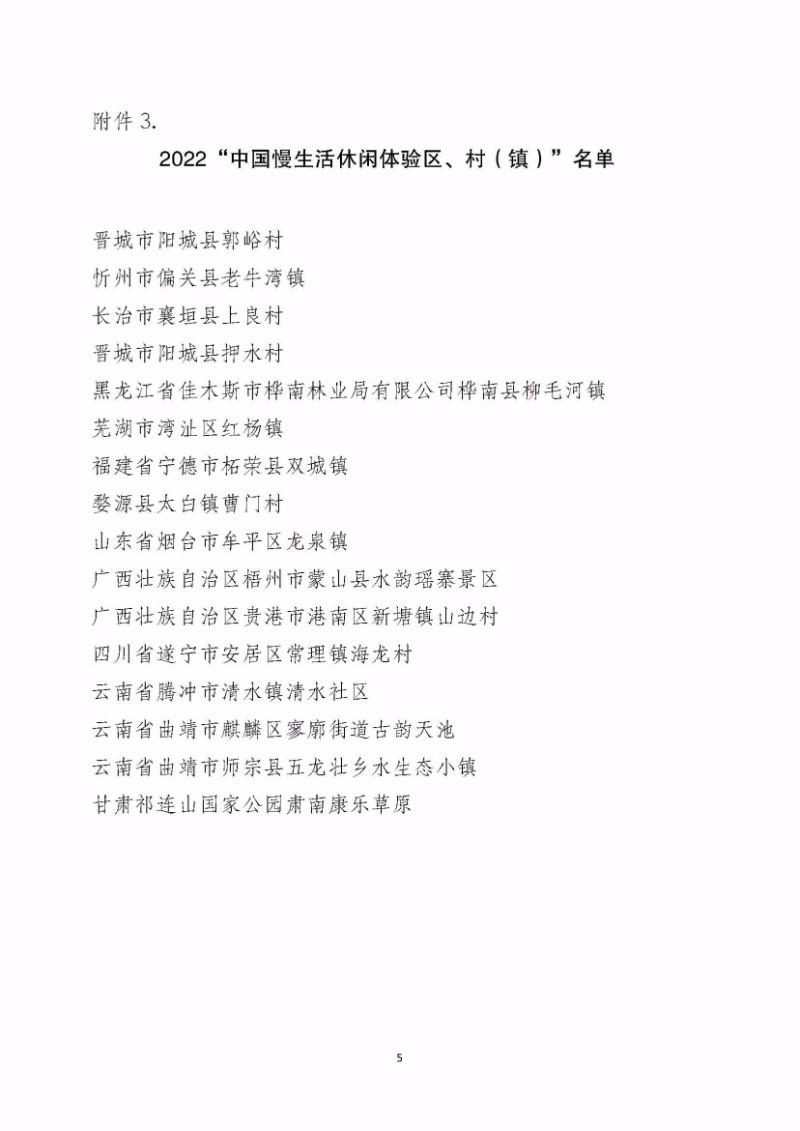中國慢生活休閑體驗區4處: