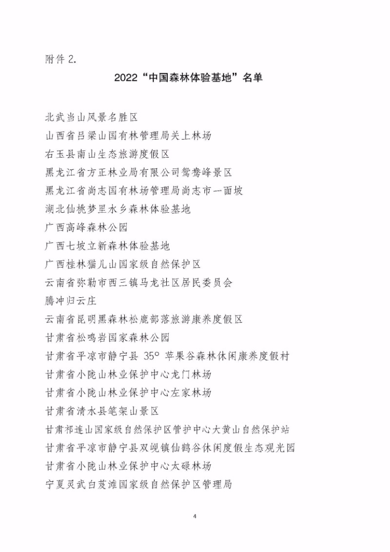 中國森林養生基地4處: