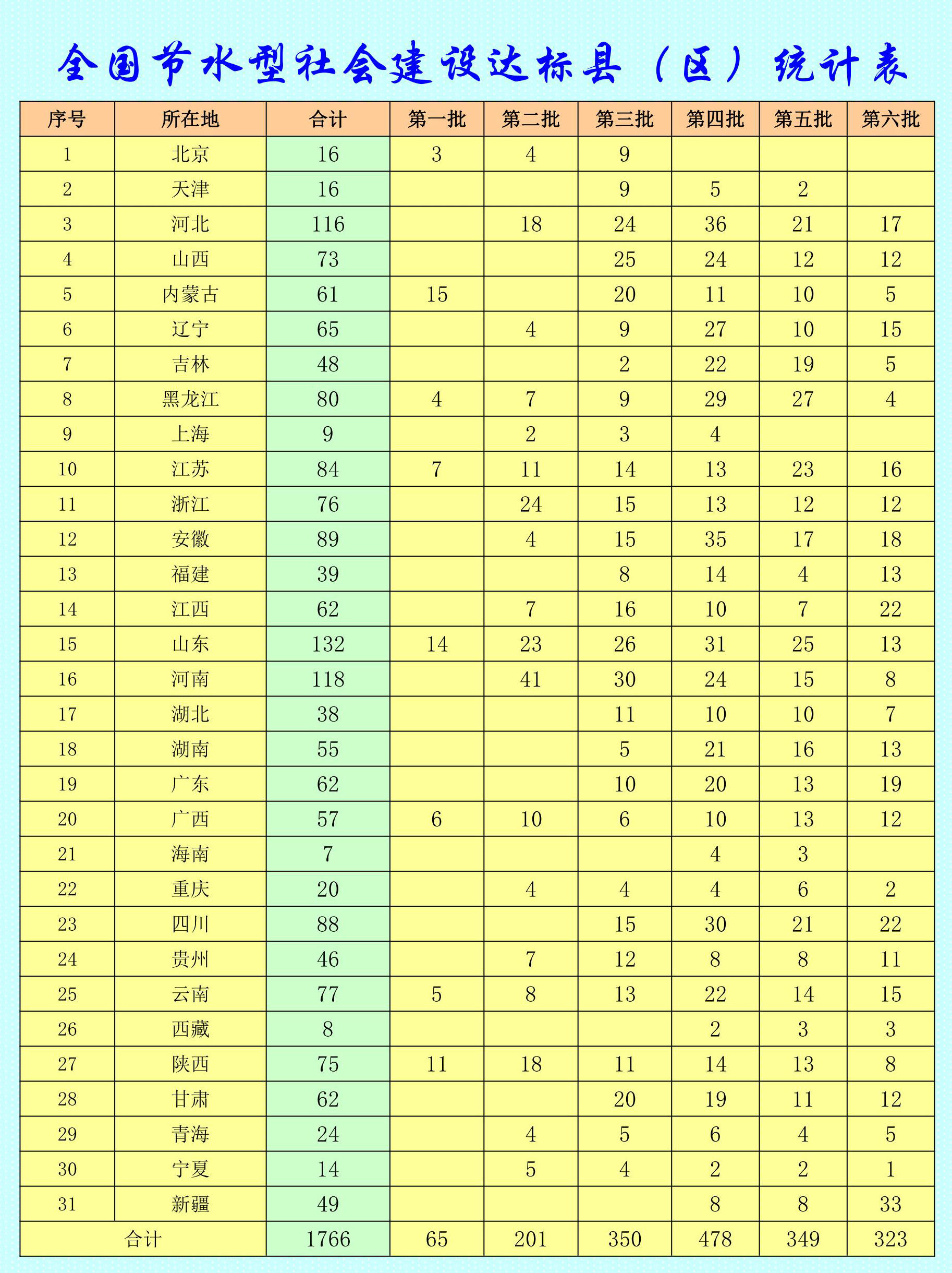 總序號 節(jié)水型社會建設(shè)達標(biāo)縣(區(qū))名稱 所在地 批次 年度 序號
