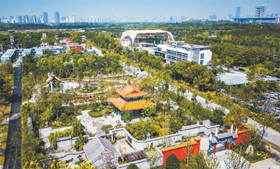 安徽合肥園博園設(shè)置38個(gè)城市展園,展示不同城市的文化特色和園林建筑風(fēng)格,吸引市民、游客前來參觀游覽。解 琛攝(新華社發(fā))