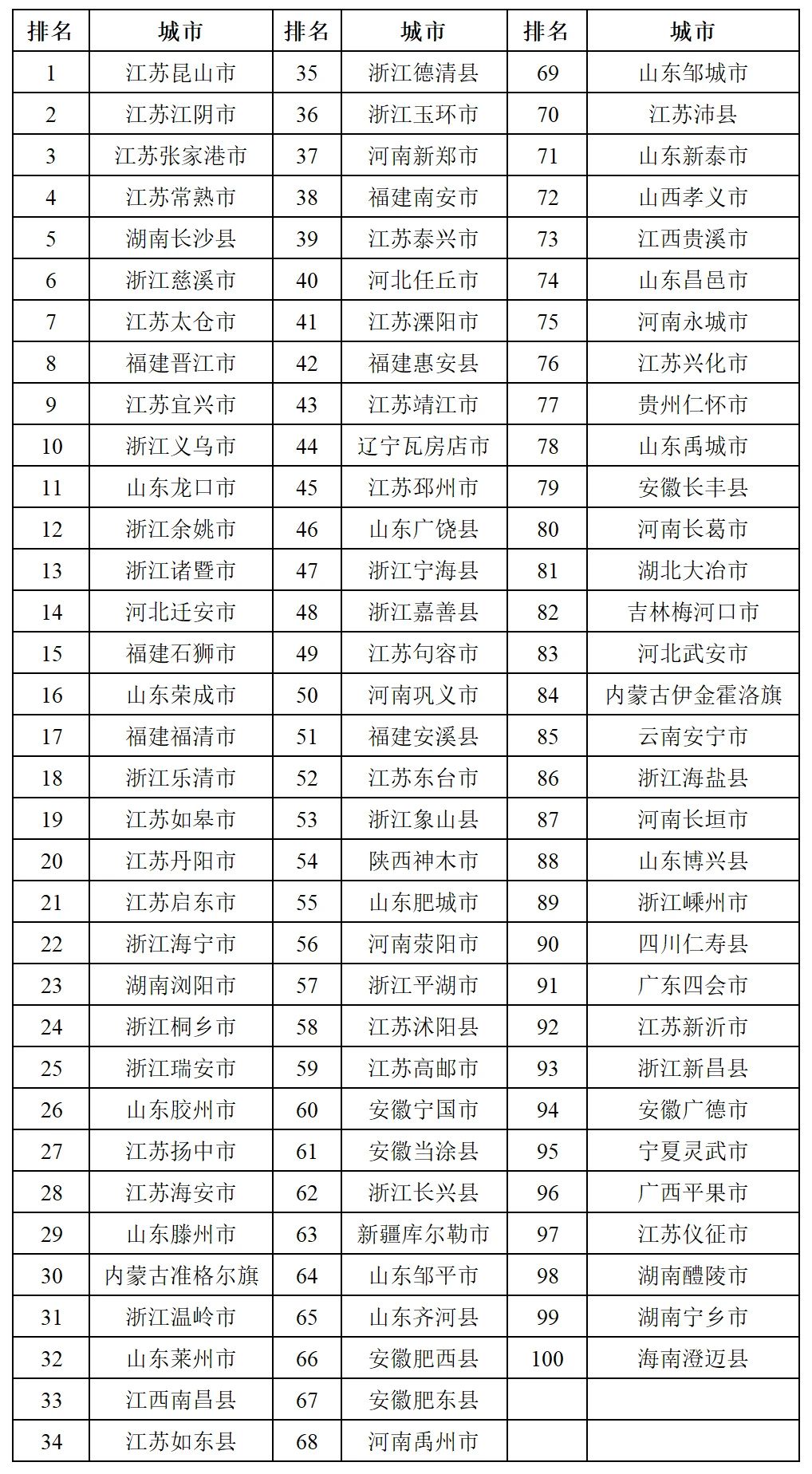 據(jù)悉,本次研究的評(píng)價(jià)對(duì)象界定為縣級(jí)市、縣及空間相對(duì)獨(dú)立的市轄區(qū),以及發(fā)展基礎(chǔ)較好、具備建市條件的鎮(zhèn)。其中的百強(qiáng)縣市為縣級(jí)市、縣、自治縣、旗;百強(qiáng)區(qū)含有鄉(xiāng)鎮(zhèn)、相對(duì)獨(dú)立發(fā)展的市轄區(qū)(北京、上海、天津、重慶四大直轄市的市轄區(qū)除外)。