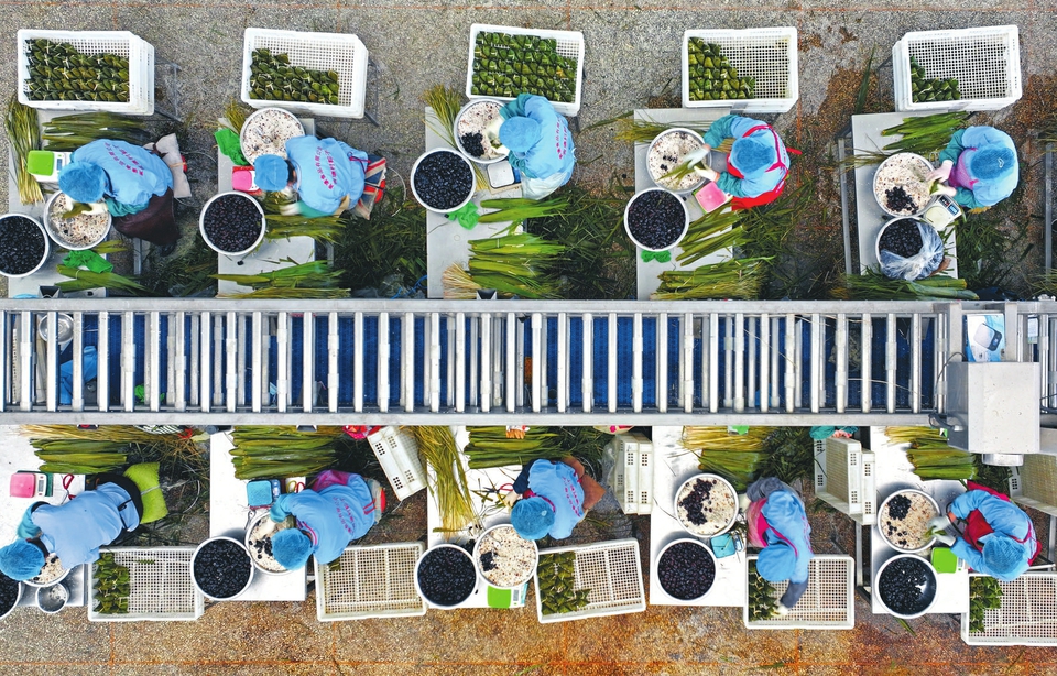5月31日,在呂梁市臨縣安業鄉青塘村粽子產業園生產車間內,工人們正在有序地包粽子。近年來,青塘村打造了以山西青塘食品有限公司為示范的大中型企業,青塘粽子成為當地的一張美食名片。