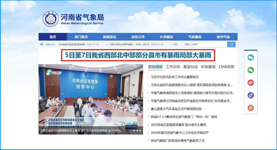 河南省氣象臺提醒,密切關注屬地氣象部門發布的最新預報信息和氣象災害預警信號,做好防范應對工作。防御指南包括做好涉山涉水景區景點、民宿、宿營地、網紅打卡地等隱患排查和安全防范;學校、幼兒園采取適當措施,保證在校學生和幼兒安全;戶外行人和工作人員減少戶外活動,注意遠離棚架廣告牌等搭建物;駕駛人員、行人及騎行人員應當注意道路積水和交通阻塞,確保安全;檢查城市、農田、魚塘排水系統,做好排澇準備和對山洪、滑坡、泥石流等災害的防御準備等。