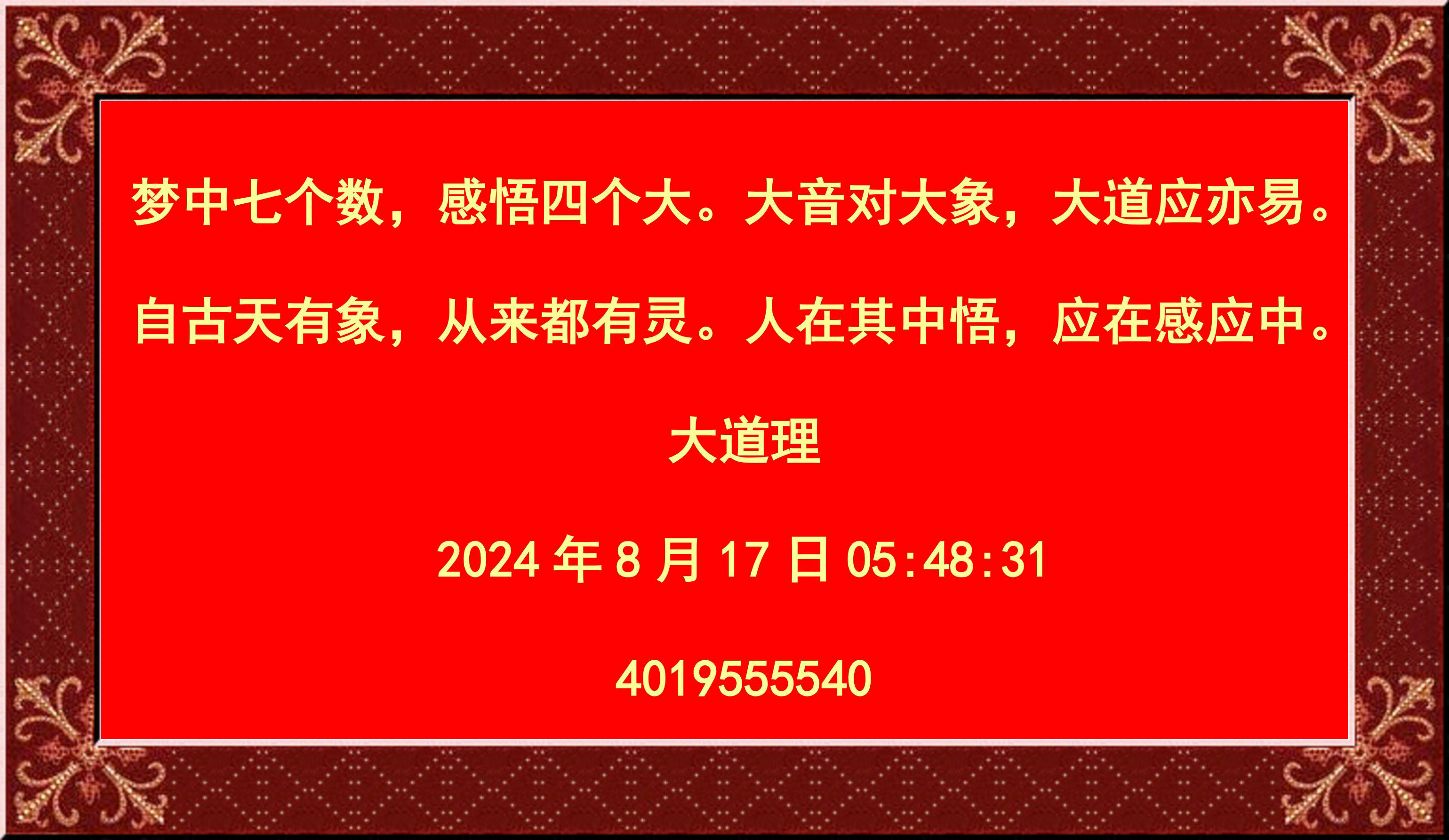 夢中七個數,感悟四個大。大音對大象,大道應亦易。