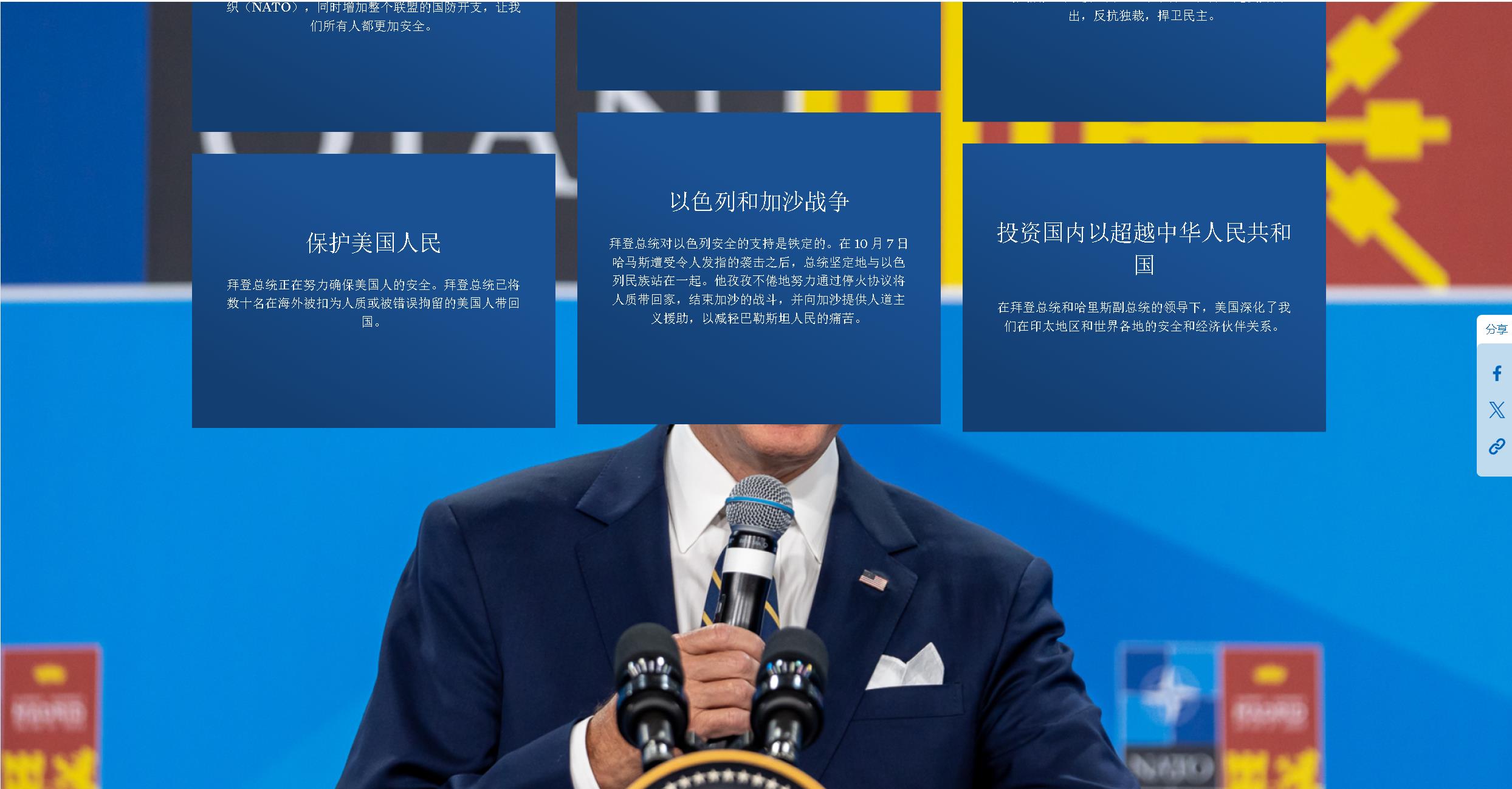 在拜登-哈里斯政府的領導下,我們深化了安全和經濟伙伴關系,我們將大西洋和太平洋伙伴聚集在一起,共同制定道路規則,增強我們在與中國的競爭中的優勢。這包括與日本建立新的全球伙伴關系,加強與韓國的延伸威懾,深化與澳大利亞的聯盟,以及與菲律賓開展歷史性合作。拜登總統還與中國在阻止芬太尼前體流入該國方面取得了具體進展。