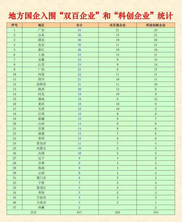 國務(wù)院國資委公布了新一期中央企業(yè)和地方國企雙百強和科技創(chuàng)新企業(yè)名錄,共計1233家。其中:雙百570家,科創(chuàng)663家。
