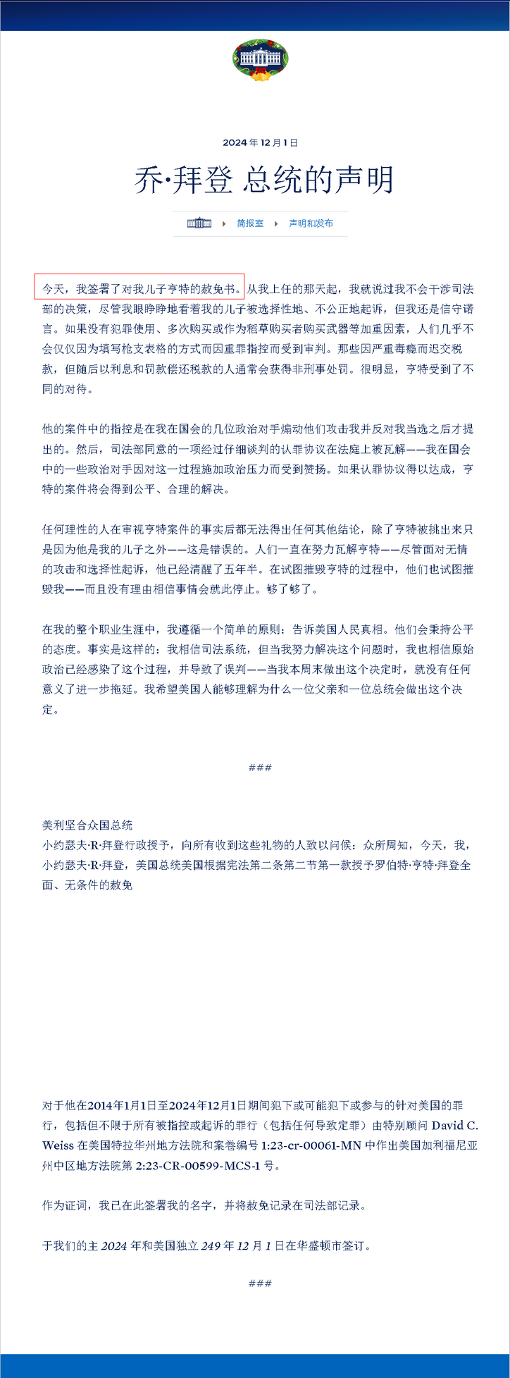美國就是這樣一個無法無天的國家,一個總統都可以徇私枉法的國家,一個無法挽救的沒落國家!明年,特朗普的報復才開始,你老拜登不是提前把自己的家人推進萬劫不復的地獄里了嗎?!